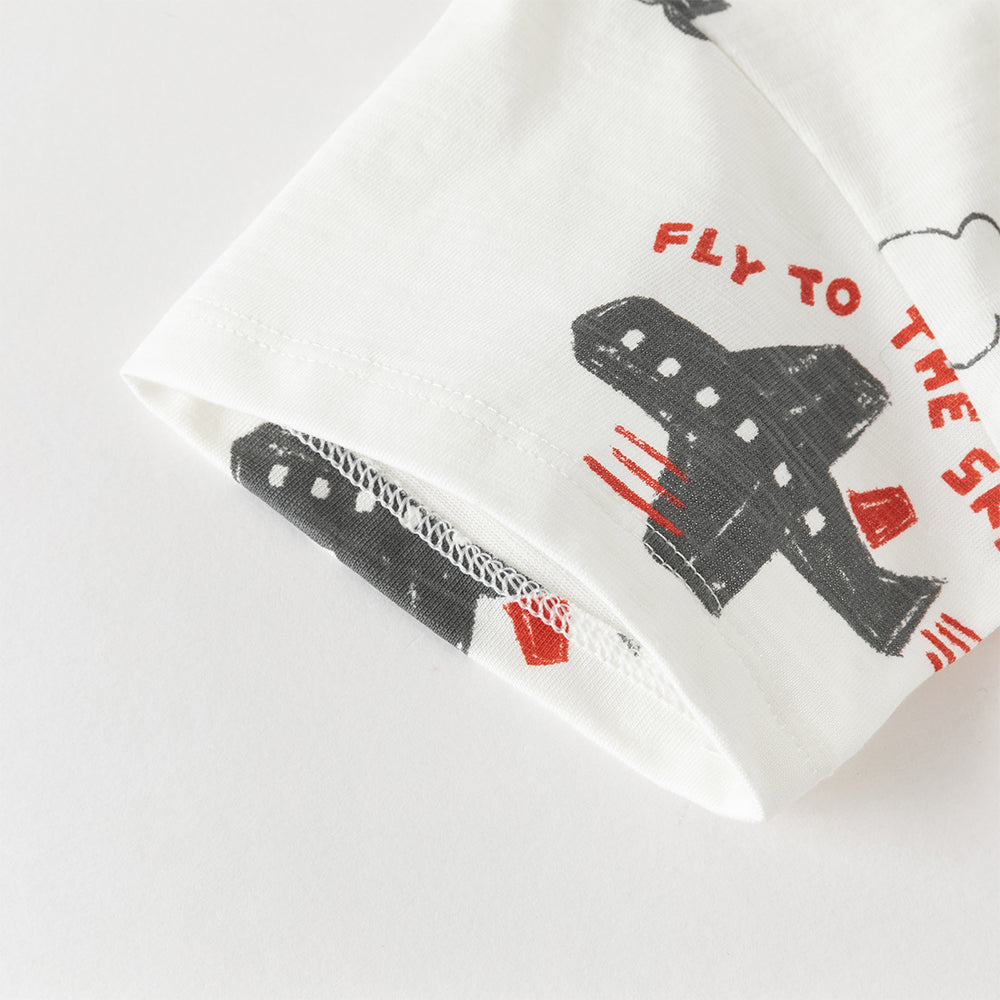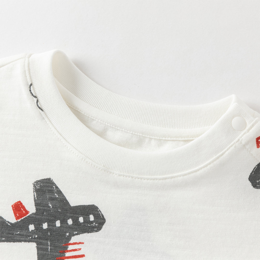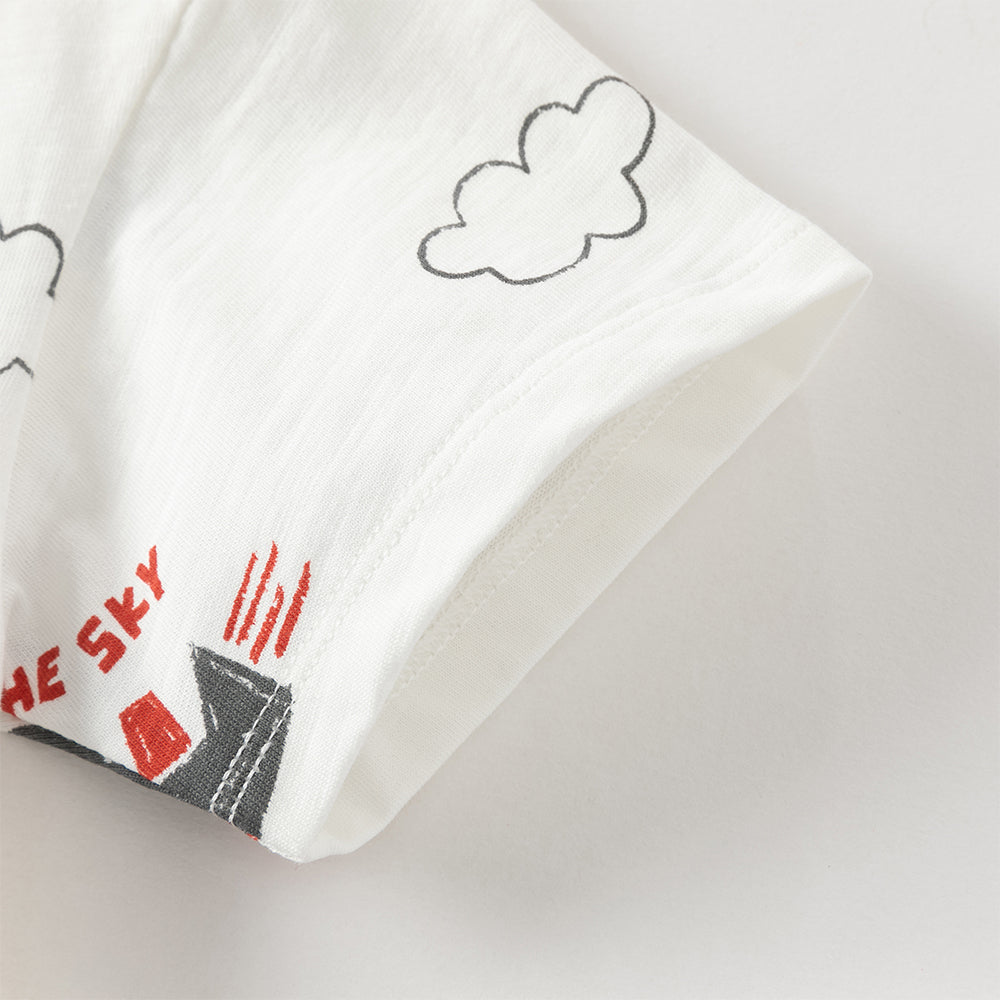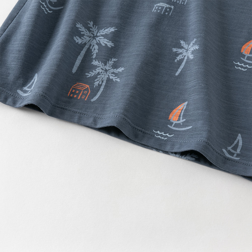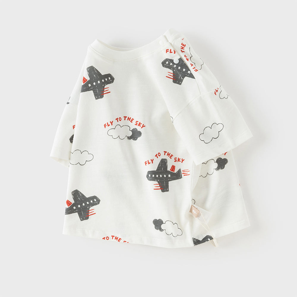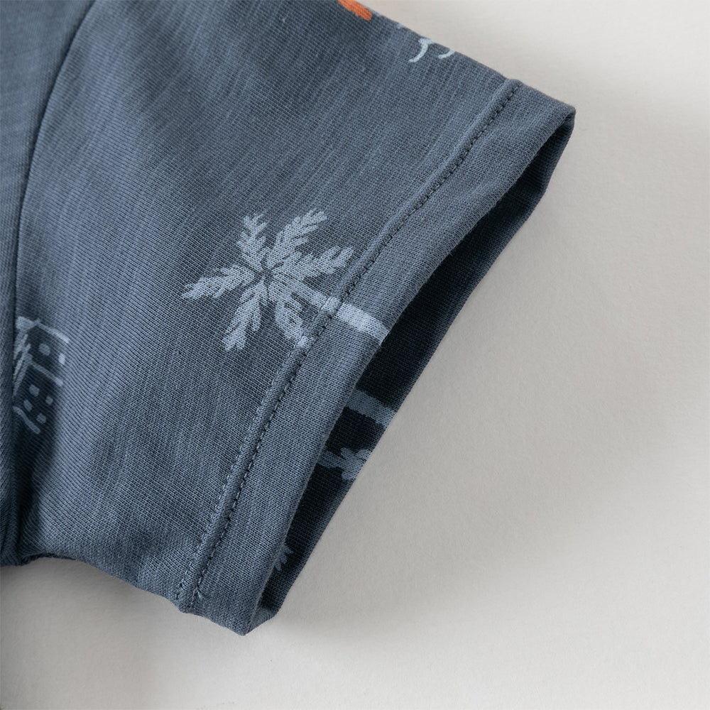 Dave&Bella Toddler Boys Summer Beige/Dark Blue Stylish Print Casual T-shirts