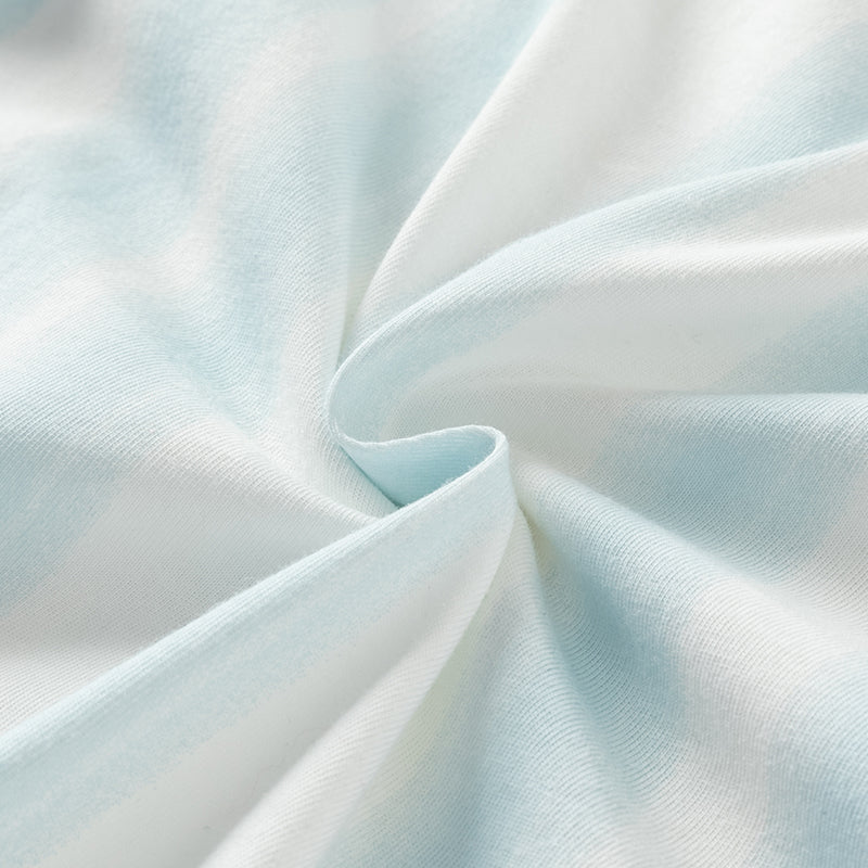 - Pattern: Blue and White Stripes (T-shirt)