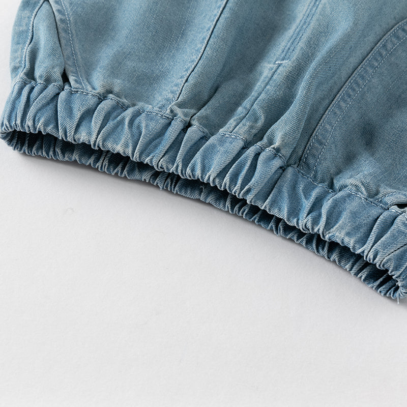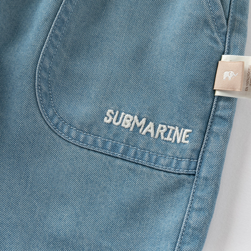 * Matching denim five-point pants