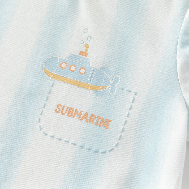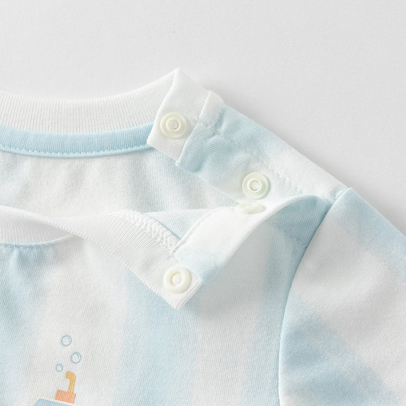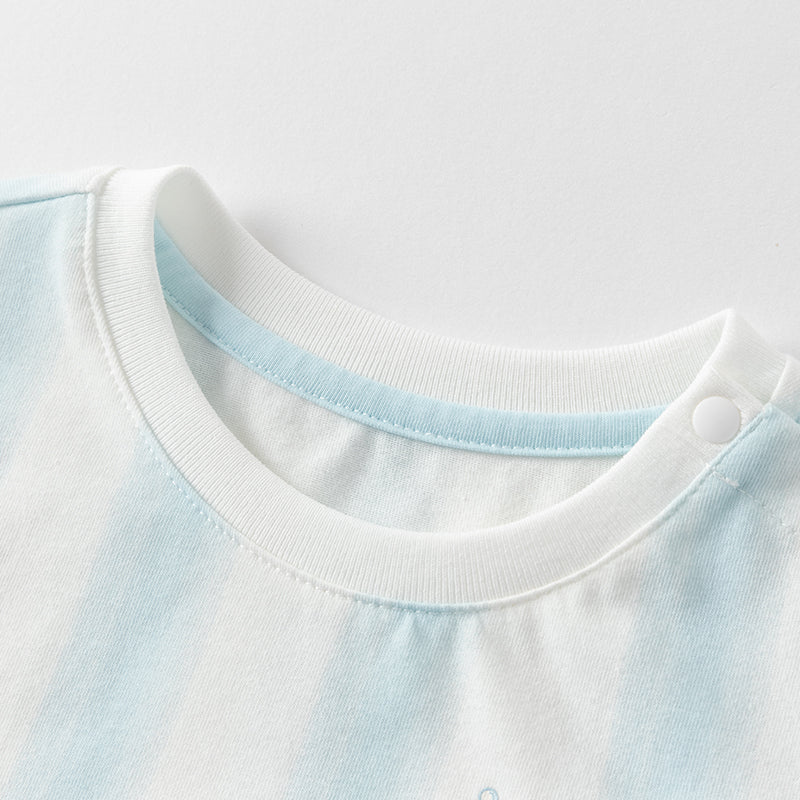 Dave&Bella Toddler Boys Summer  Blue White Striped T-Shirt Short Sets