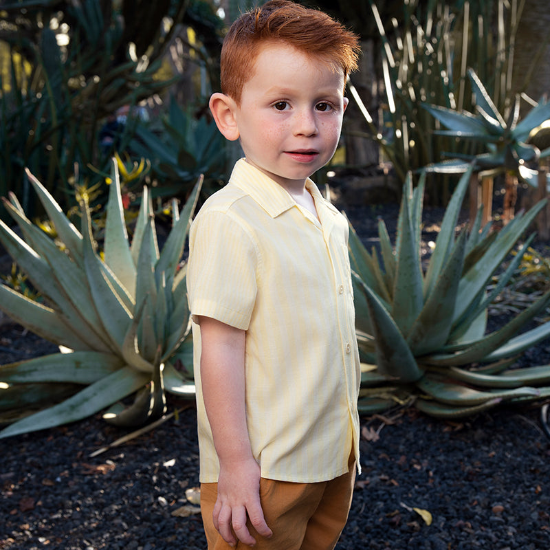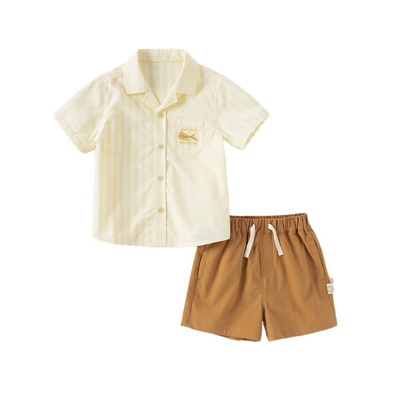 Dave&Bella Toddler Boys Summer College Yellow White Striped T-shirt Shorts Sets