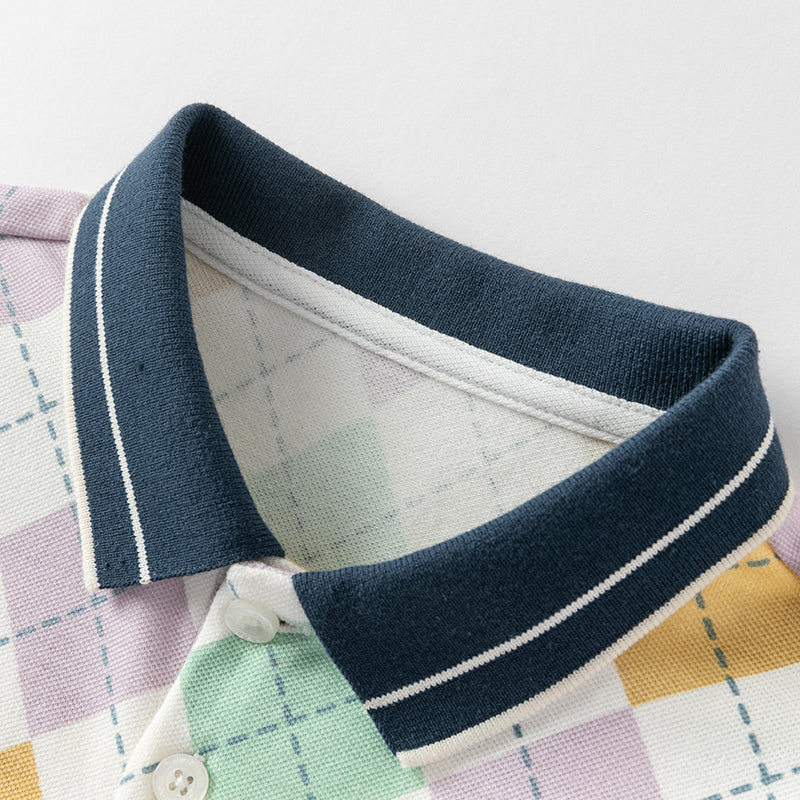 Dave&Bella Toddler Boys Summer Color-plaid Soft Cotton Polos