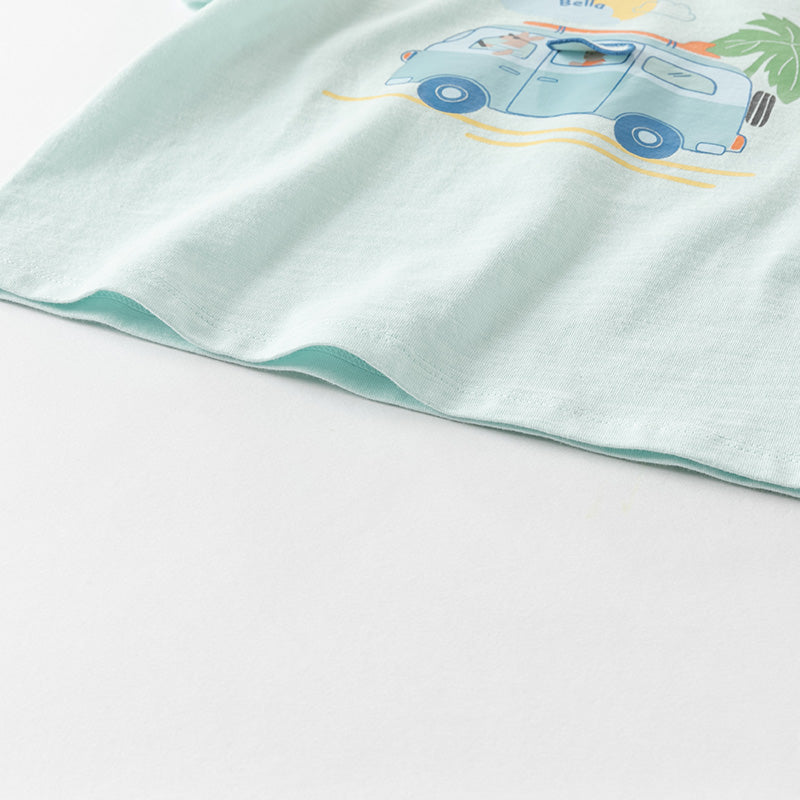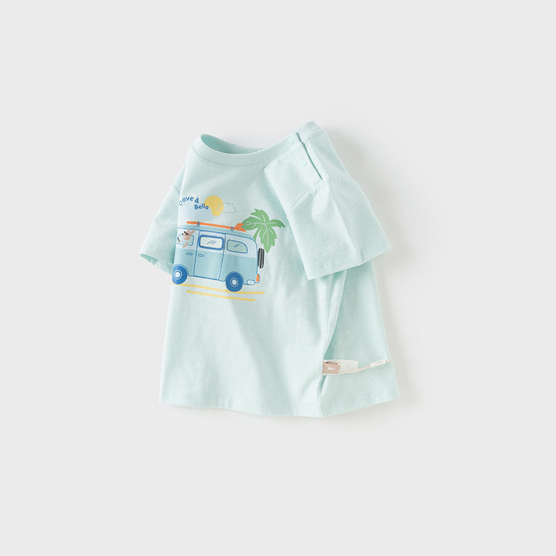 Dave&Bella Toddler Boys Summer Cute Car Print Blue Breathable Cotton T-shirts
