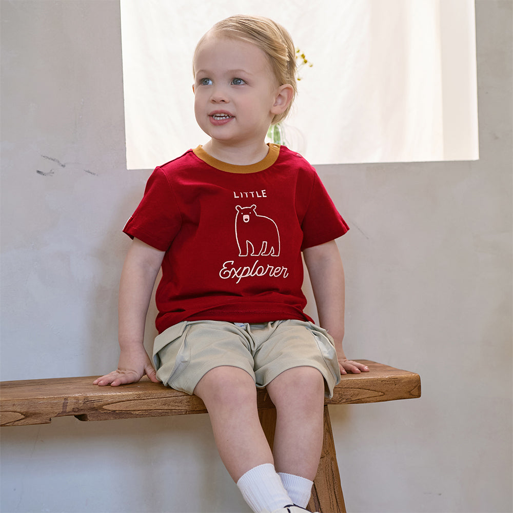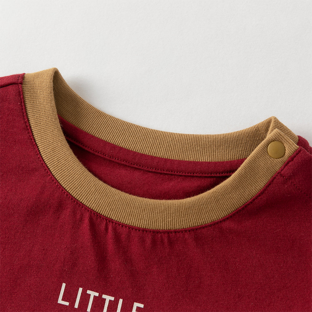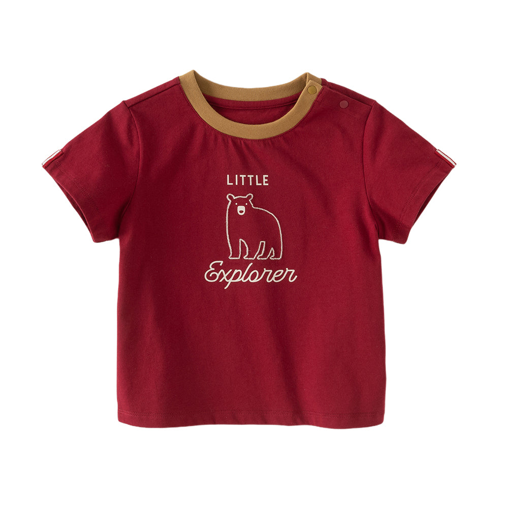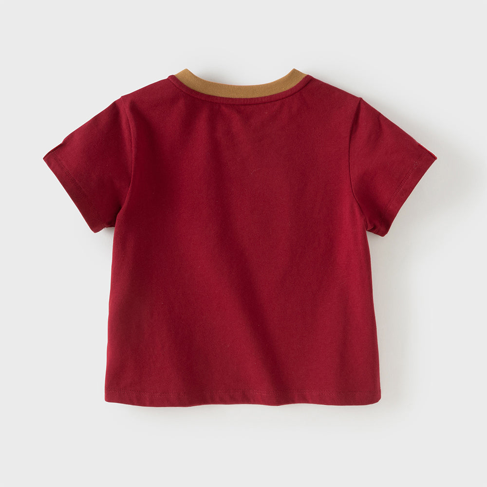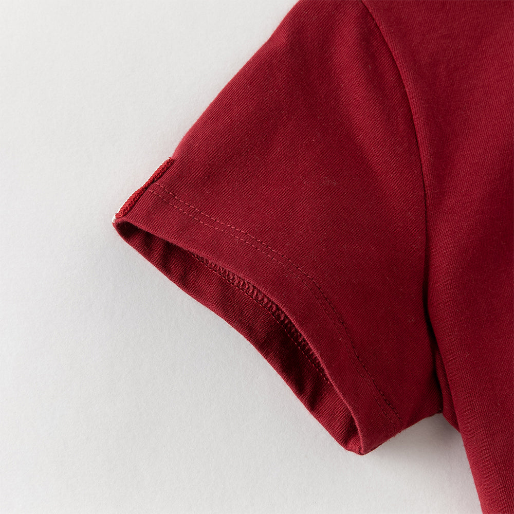 Dave&Bella Toddler Boys Summer Dark Red Comfortable Cotton Daily Short Sleeve T-shirts