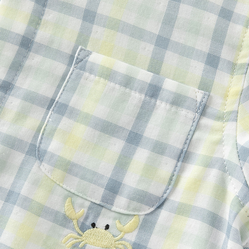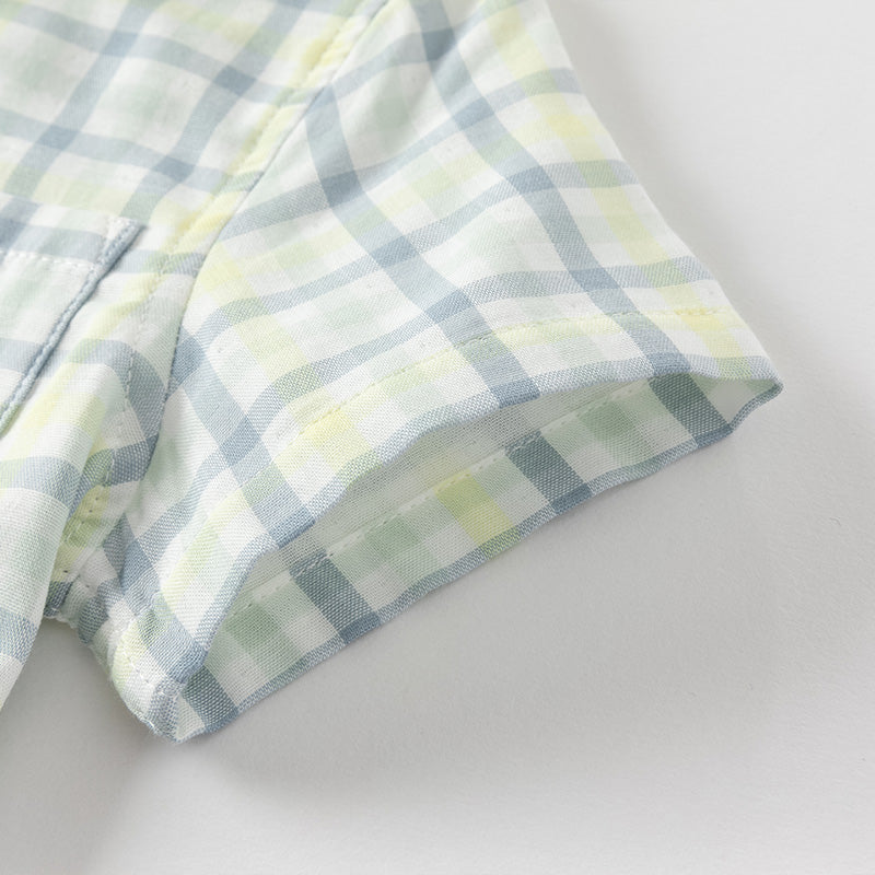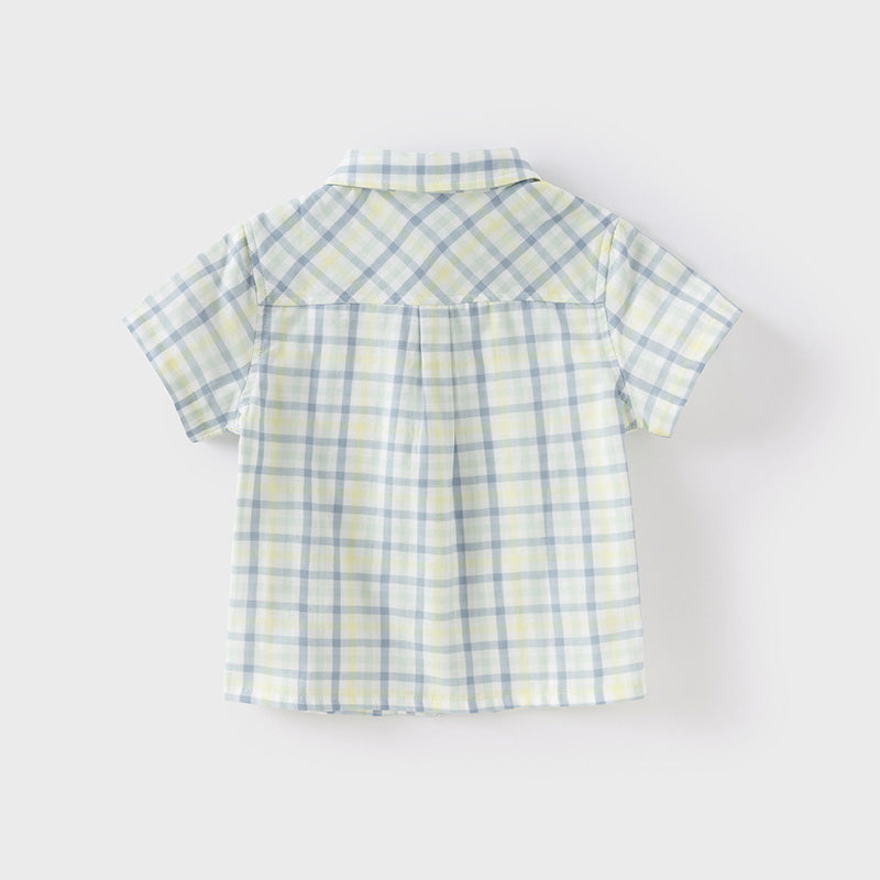 Dave&Bella Toddler Boys Summer Formal Blue Green Plaid College-style Cotton Shirt Tops