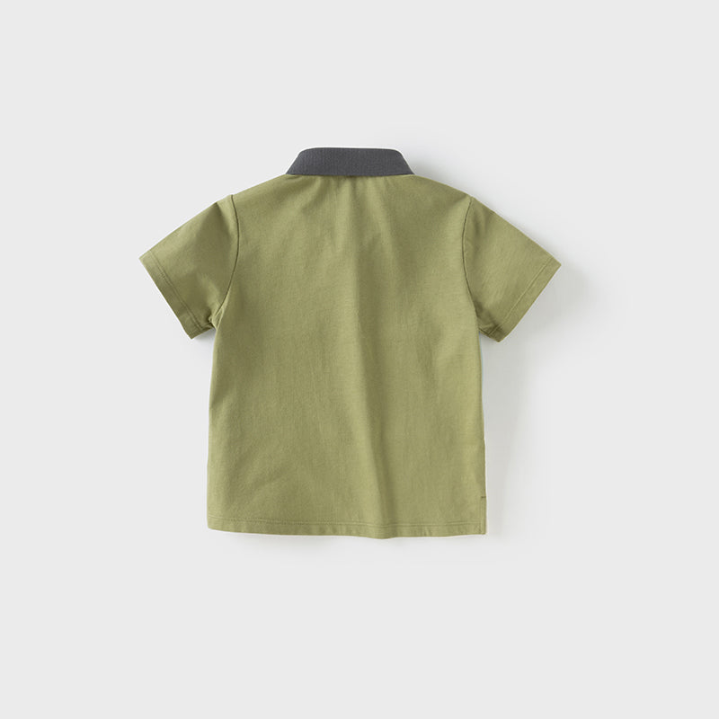 Dave&Bella Toddler Boys Summer Grass Green Cotton Soft College-style Polos