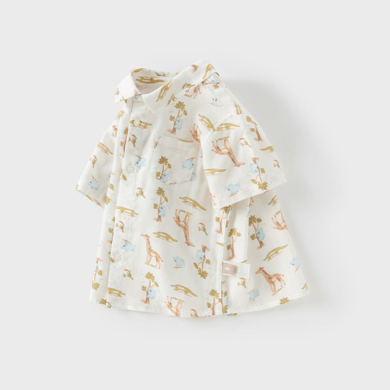 Dave&Bella Toddler Boys Summer Playful Print Casual Shirts Tops