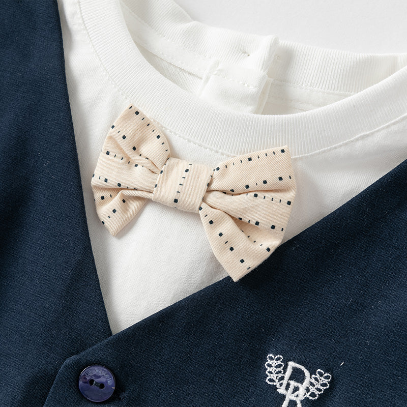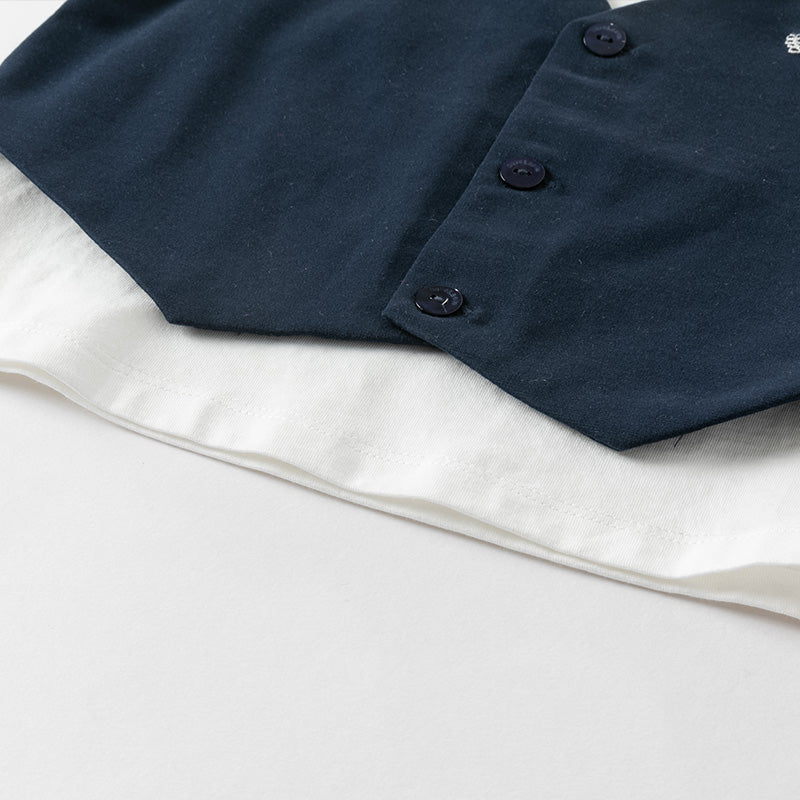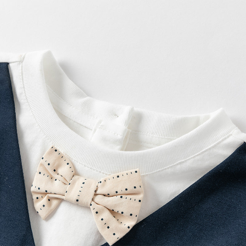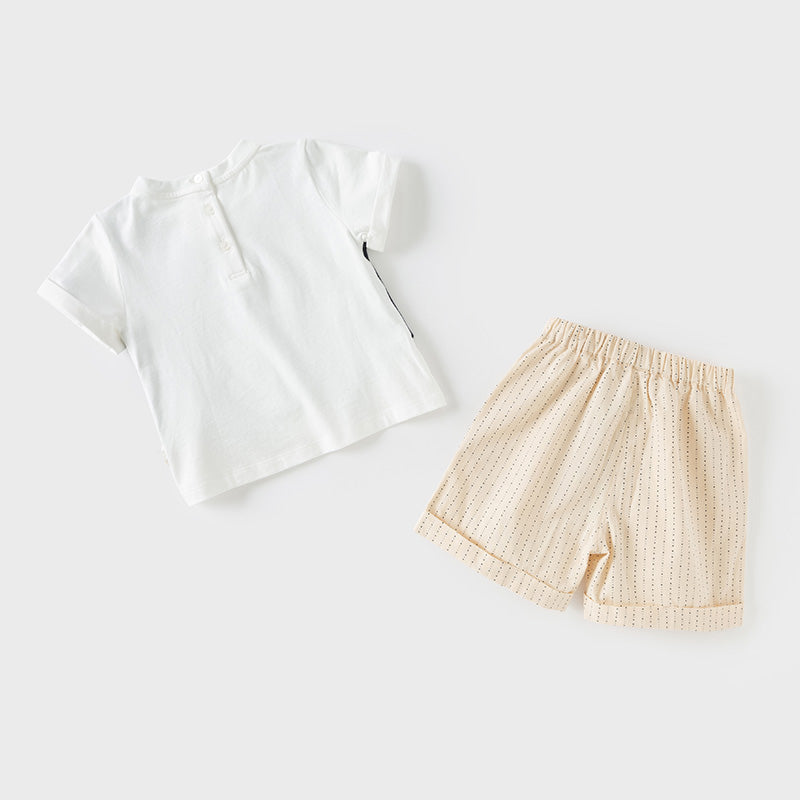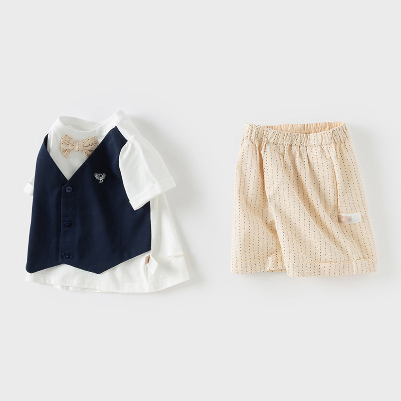 Dave&Bella Toddler Boys Summer Pure Cotton Fake-two-piece T-shirt Shorts Sets