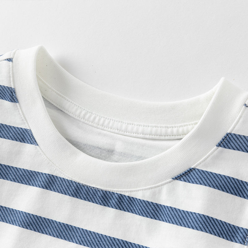 * Versatile blue and beige striped pattern with fun car print