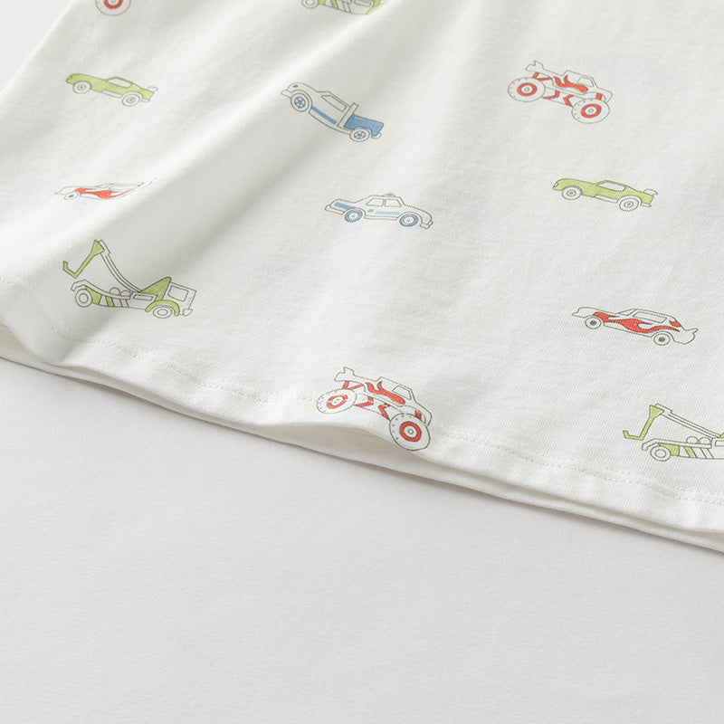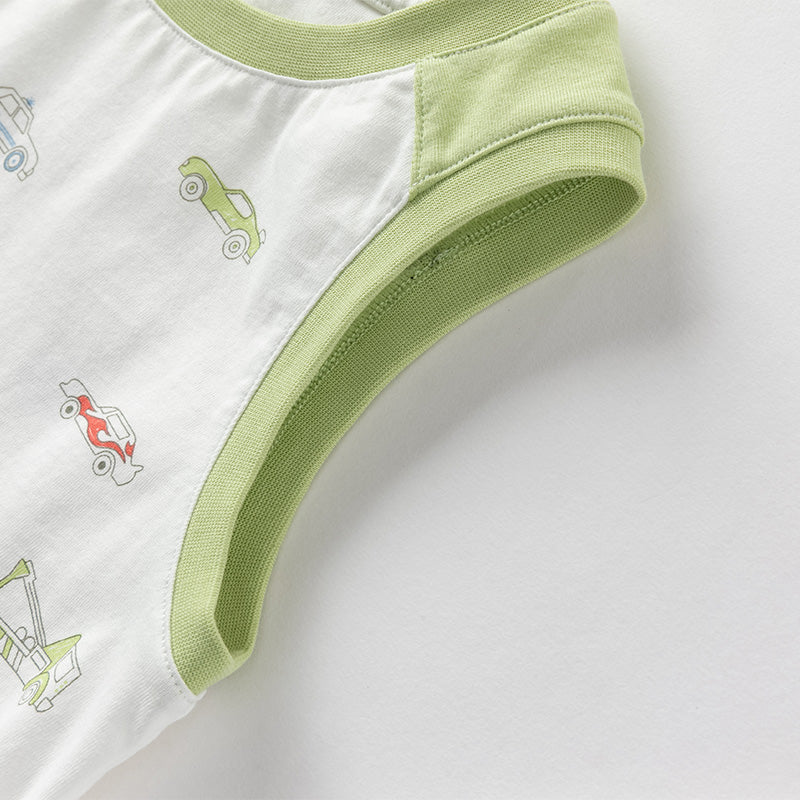 Dave&Bella Toddler Boys Summer Versatile Striped/Car Print Pure Cotton Tank Tops