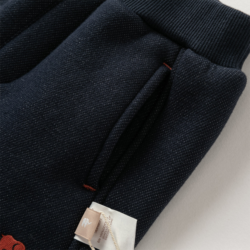 Dave&Bella Toddler Boys Winter Navy Blue Plush-lined Warm Loose Drawstring Sweatpants