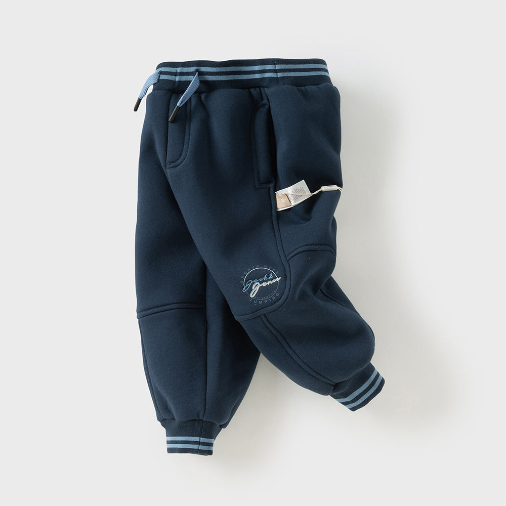 Dave&Bella Toddler Boys Winter Warm Plush-lined Sports Drawstring Sweatpants