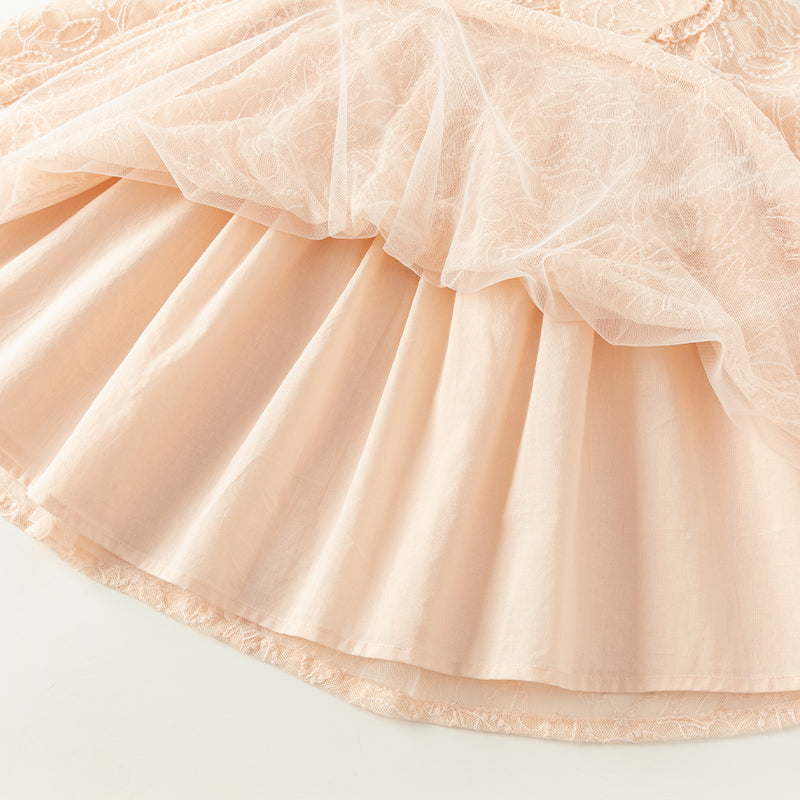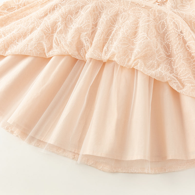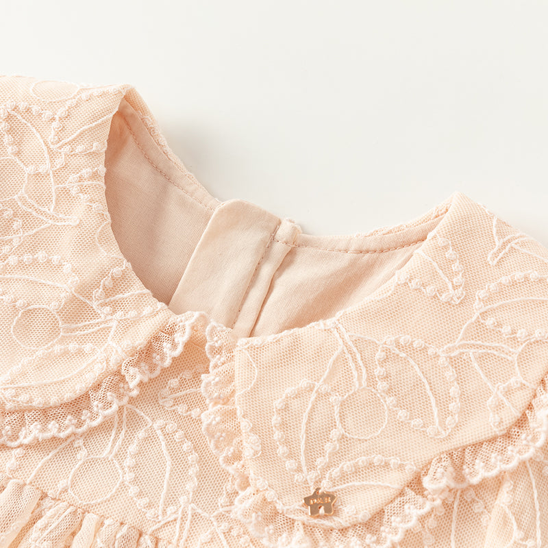 Dave&Bella Toddler Girls Autumn Adorable Light Pink Doll Collar Mesh Princess Dress
