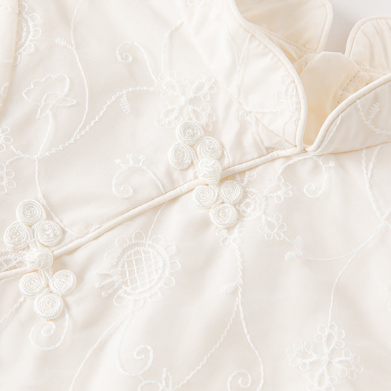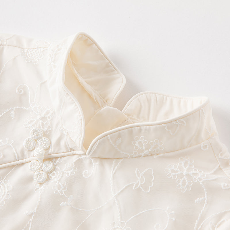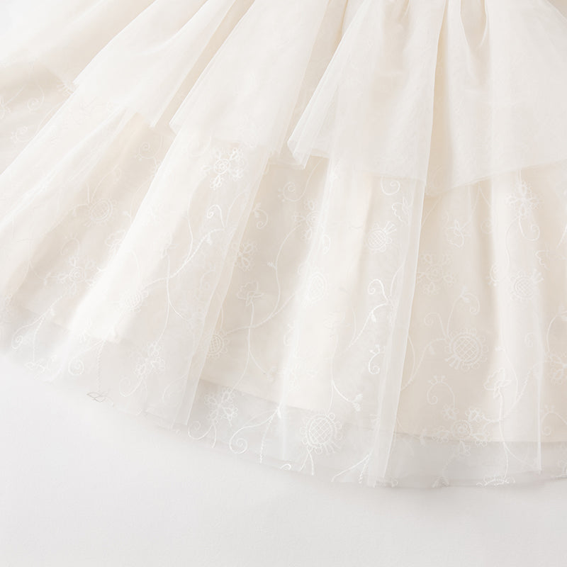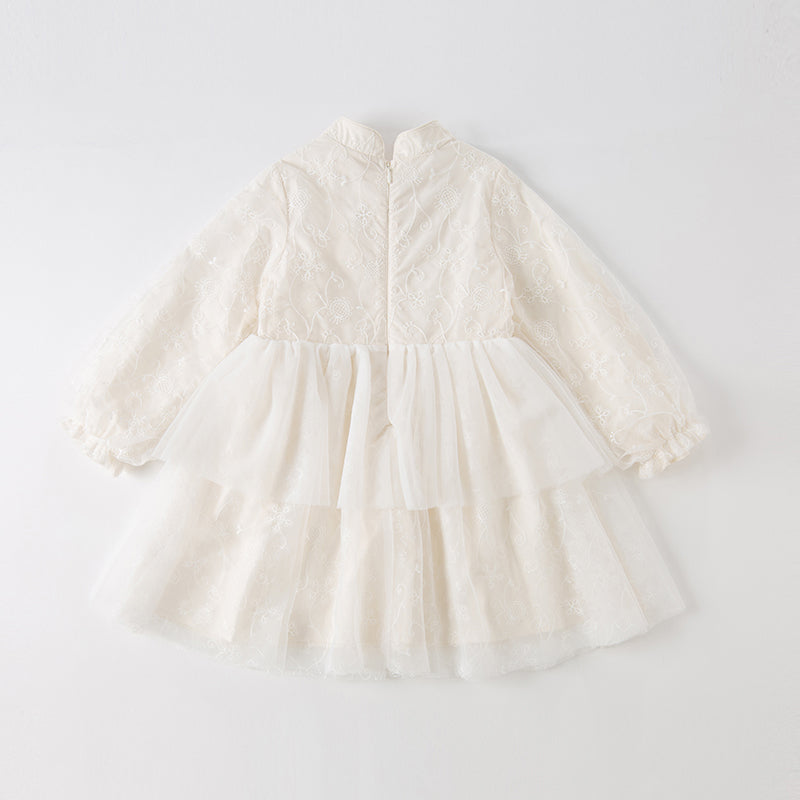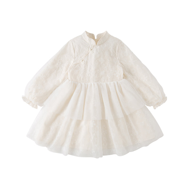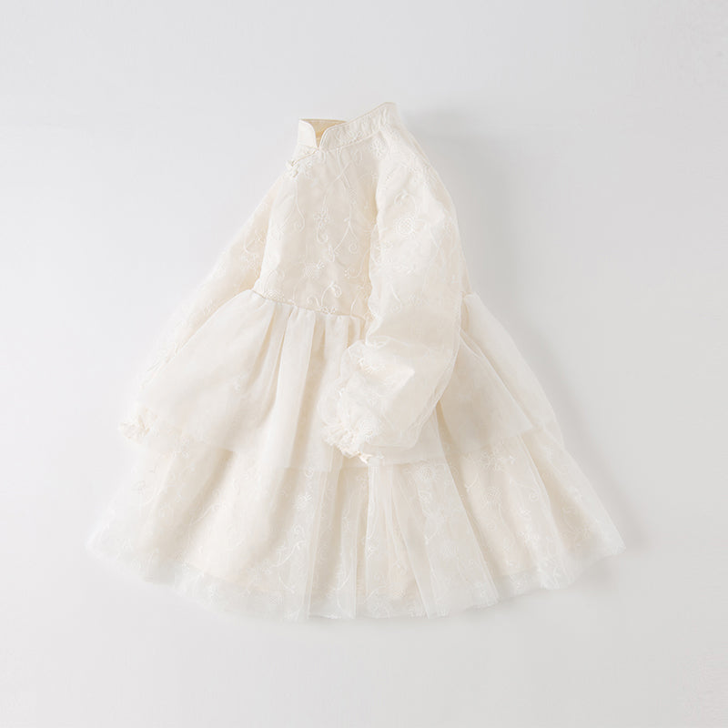 Dave&Bella Toddler Girls Autumn Elegant Chinese Style Beige Mesh A-line Dress