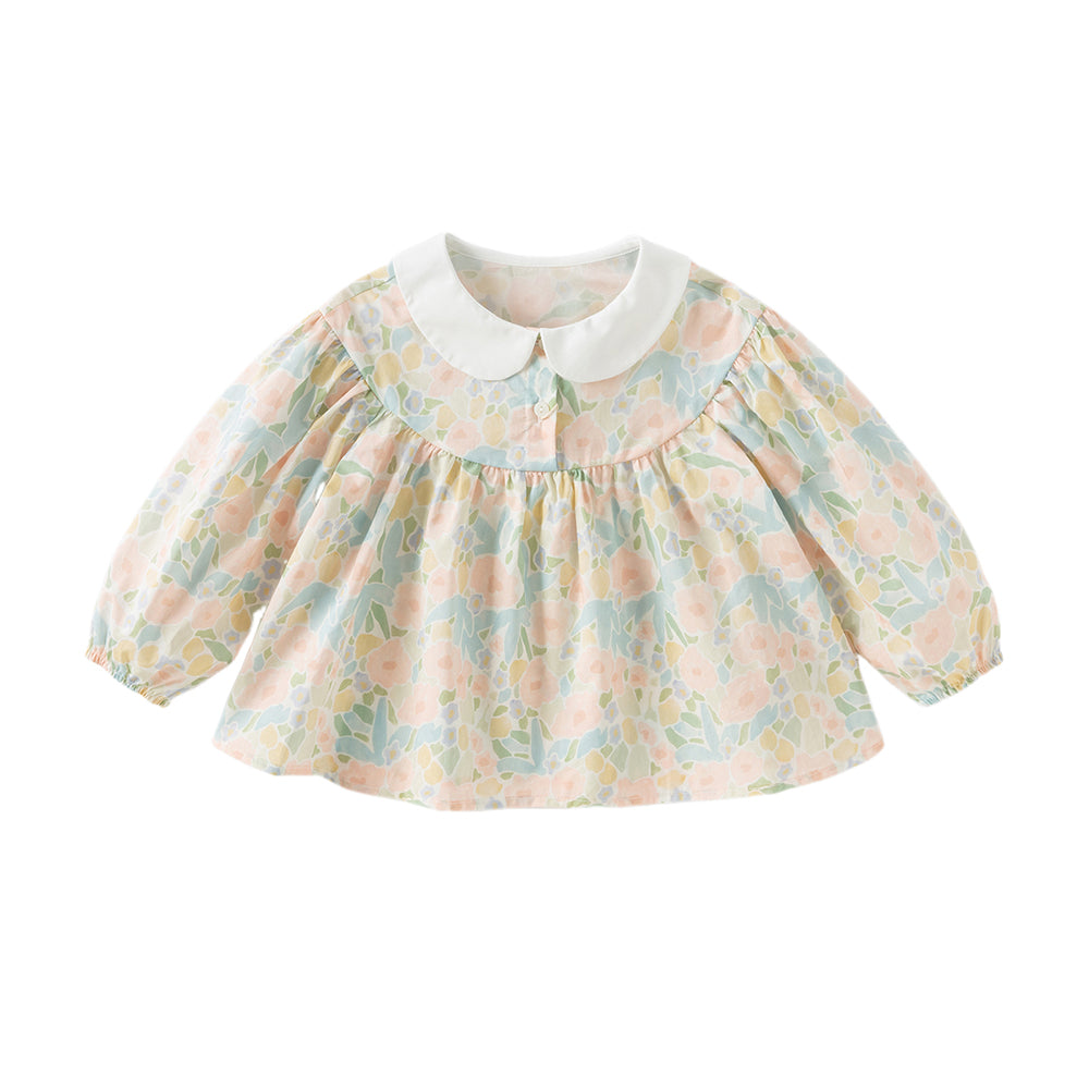 Dave&Bella Toddler Girls Autumn Floral Print Cotton Shirts Tops