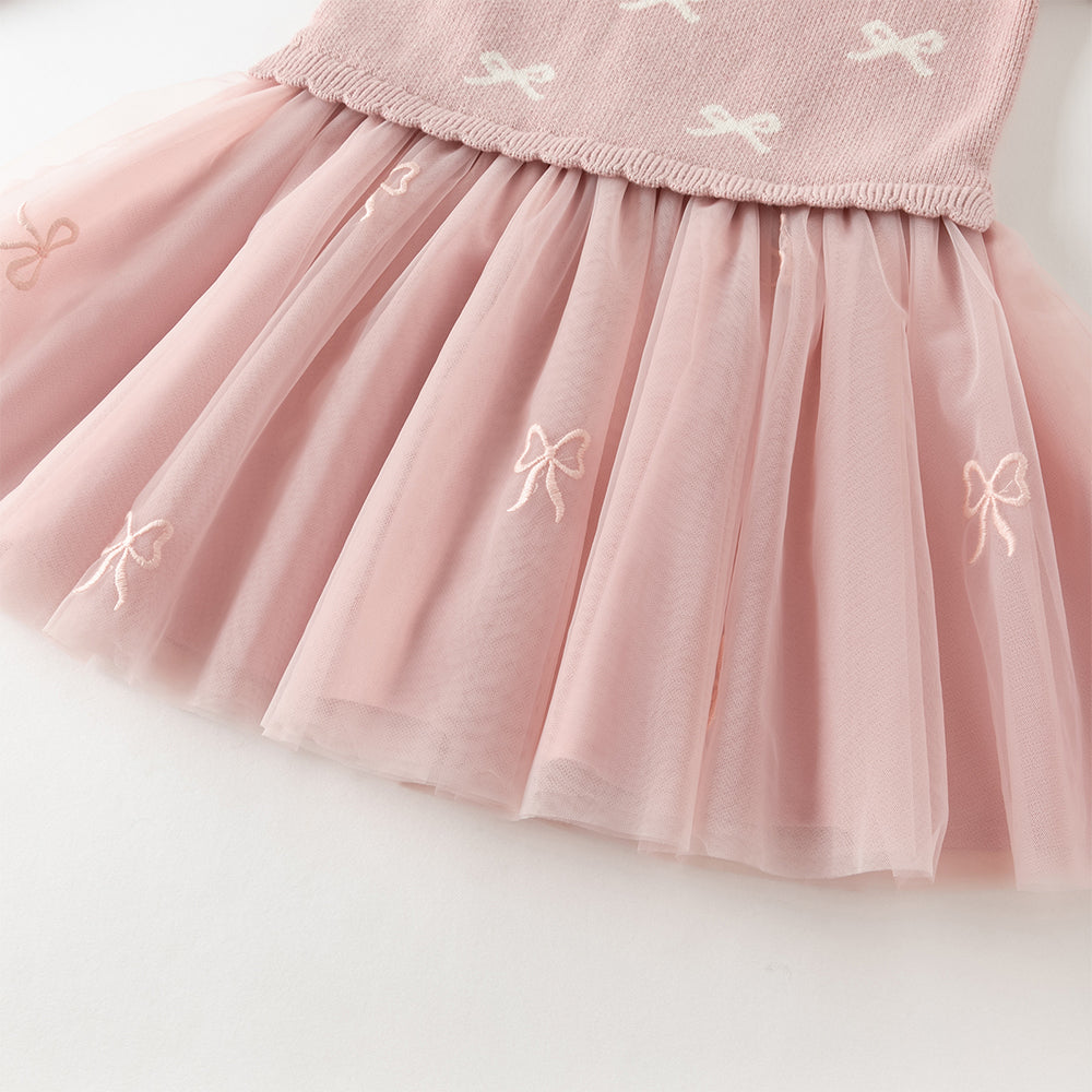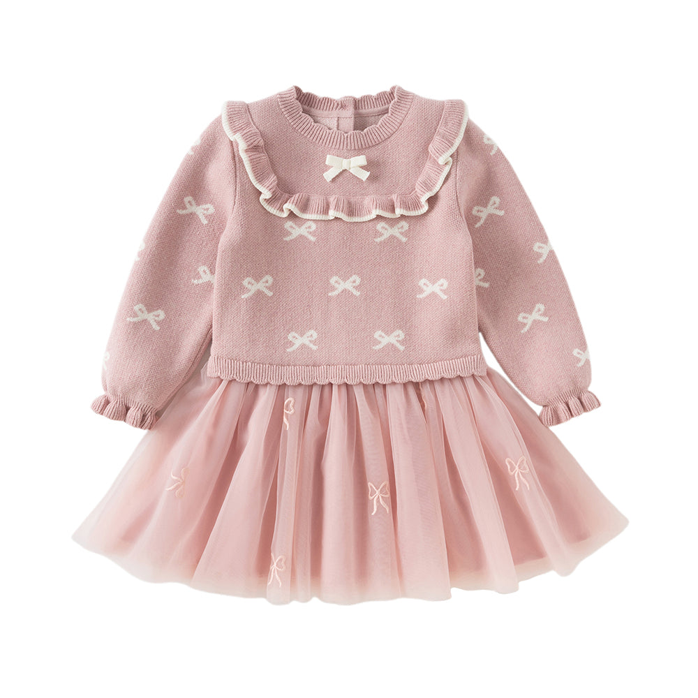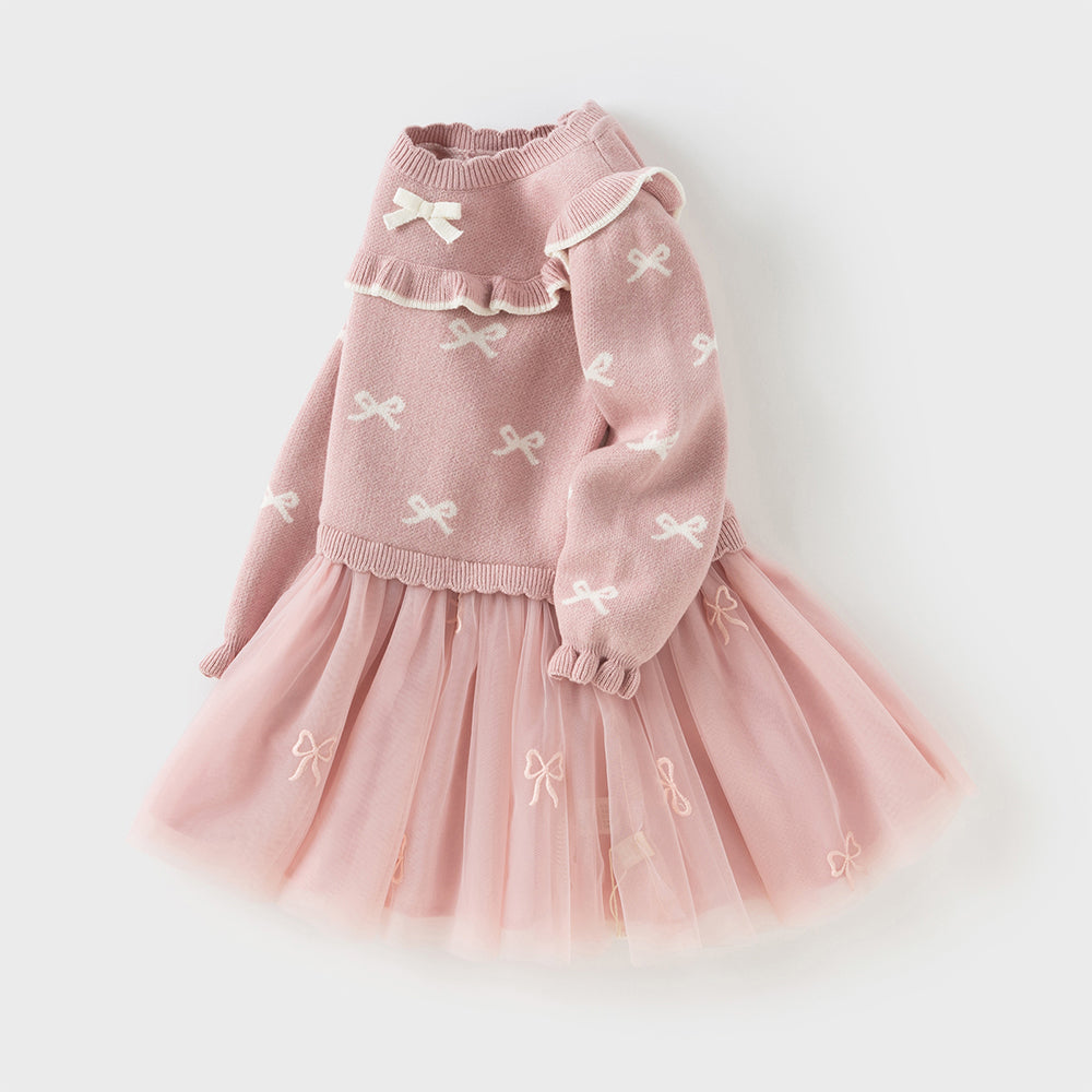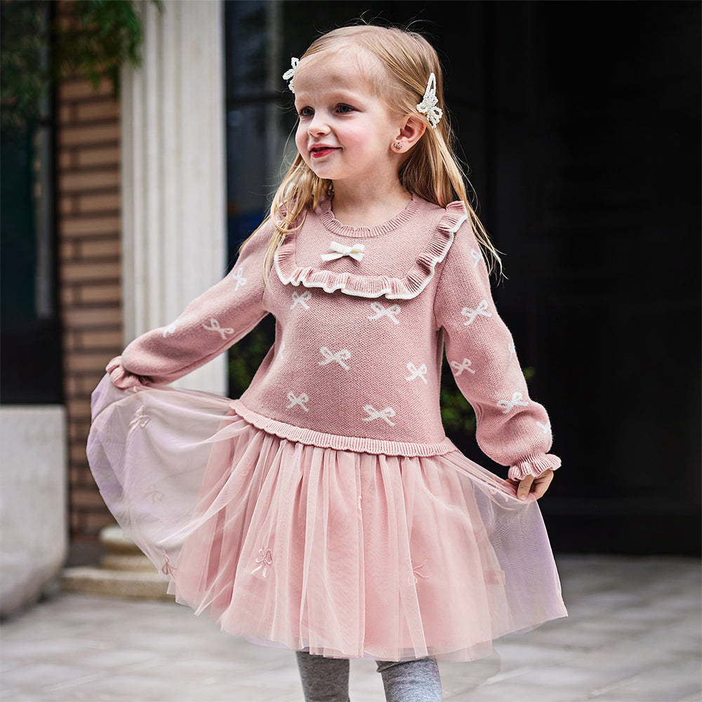 Dave&Bella Toddler Girls Autumn Noble Pink Mesh Sweater A-line Princess Dress
