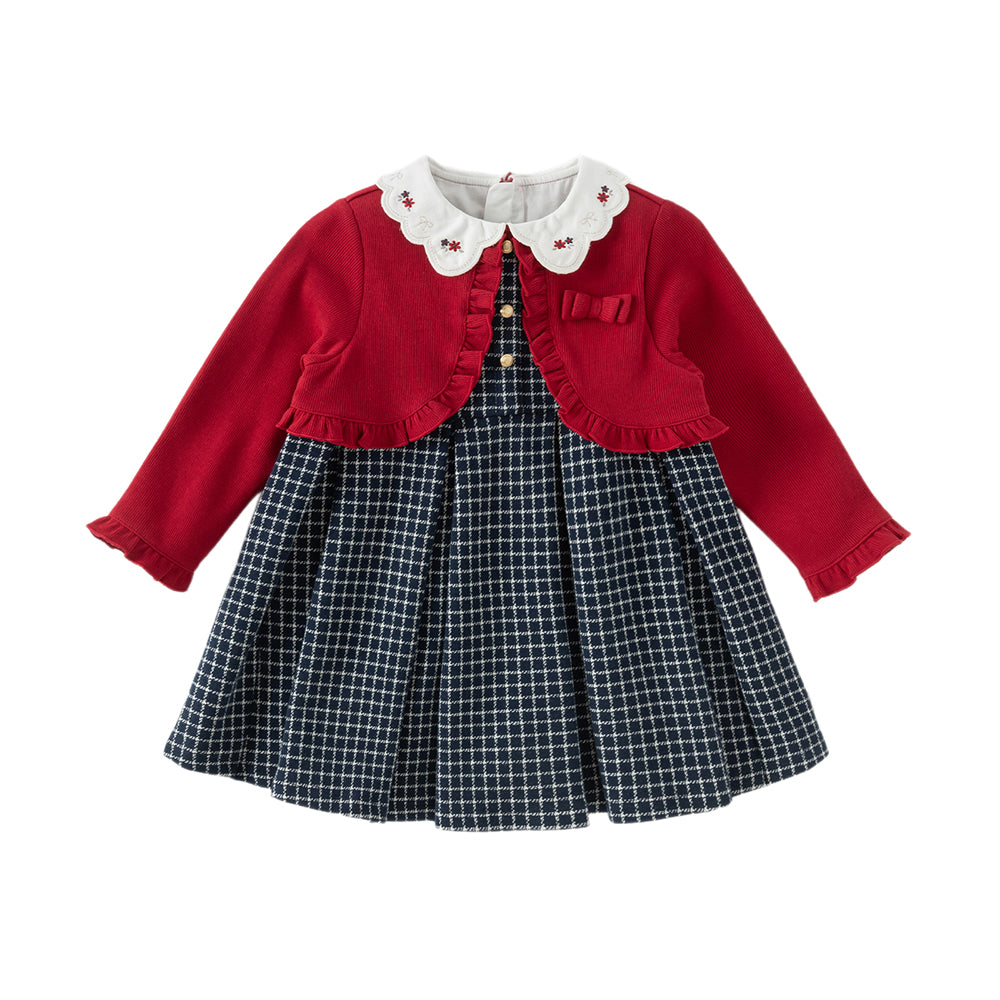 Dave&Bella Toddler Girls Autumn Red Versatile  A-line Princess Dress