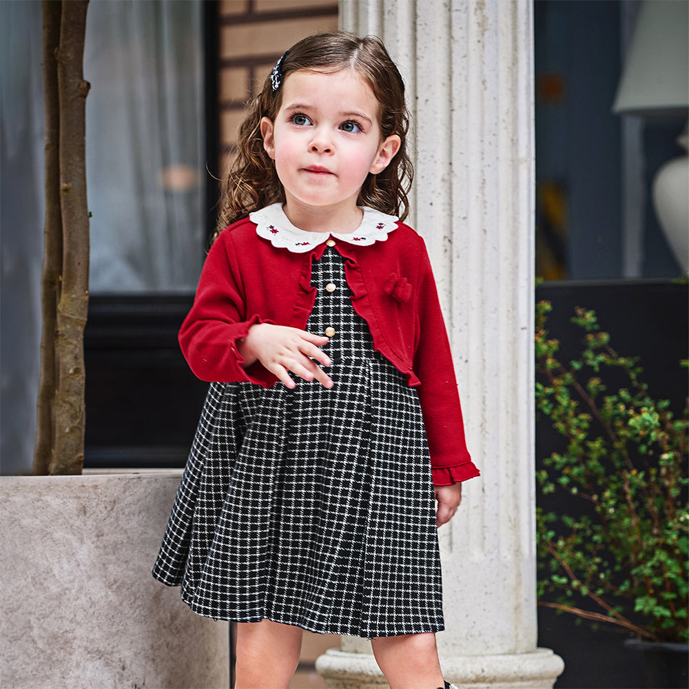Dave&Bella Toddler Girls Autumn Red Versatile A-line Princess Dress