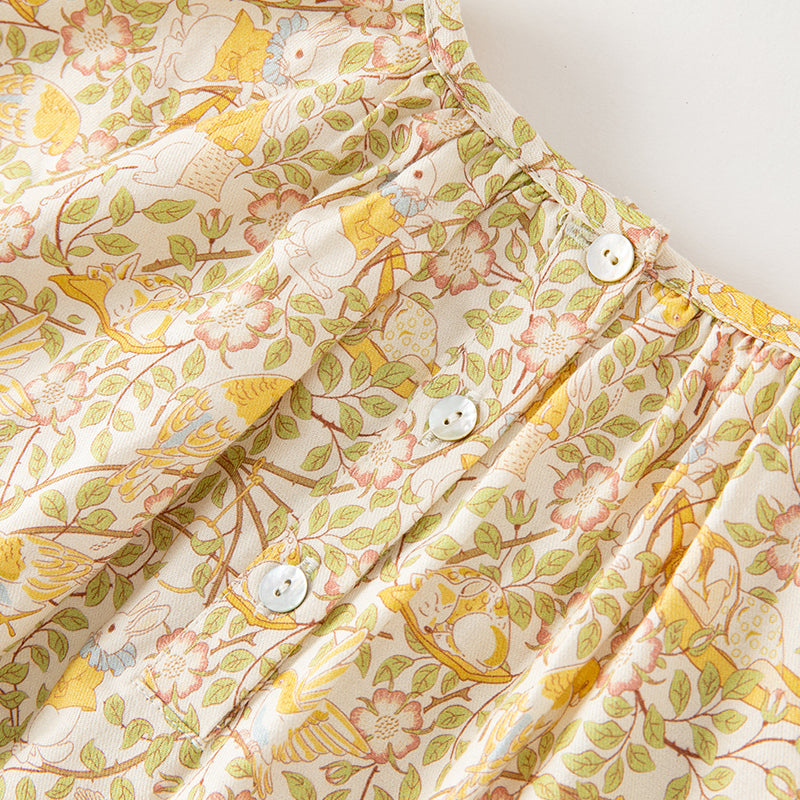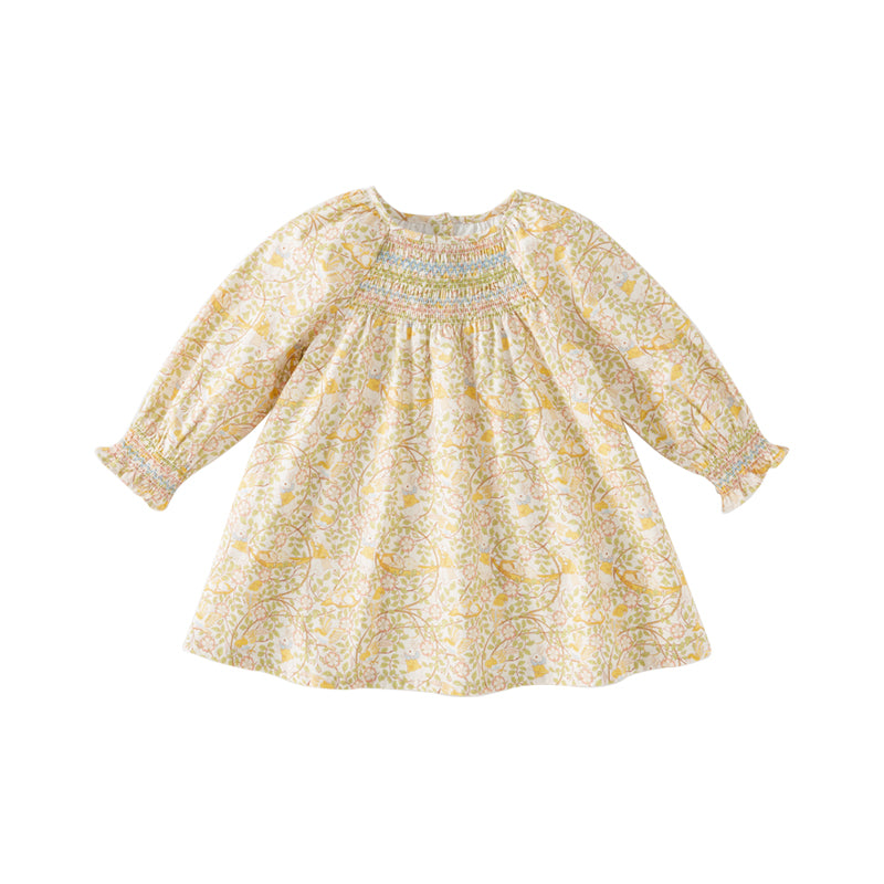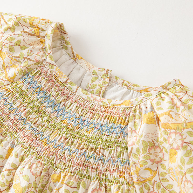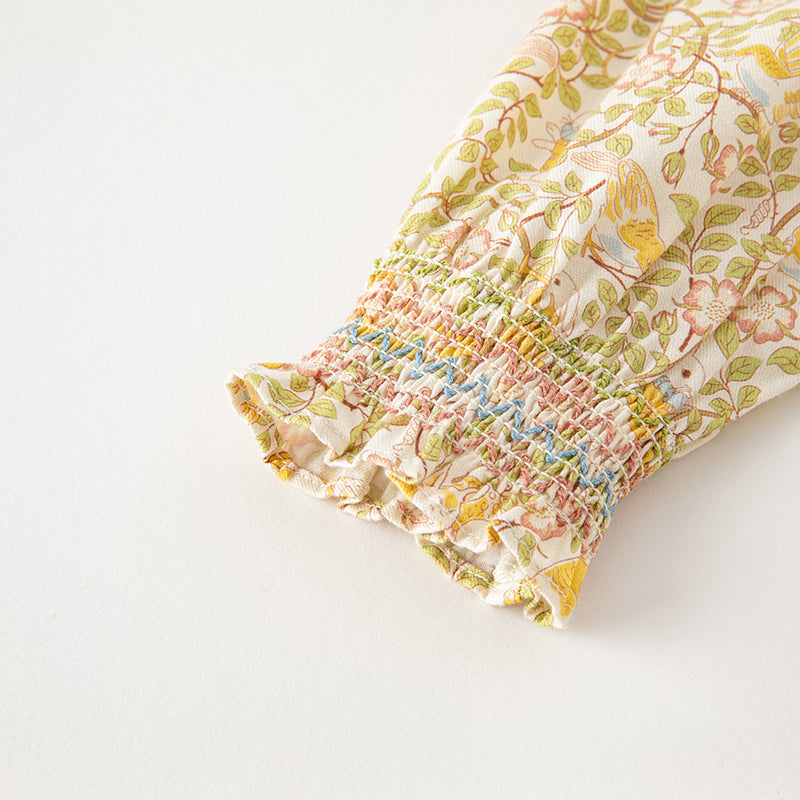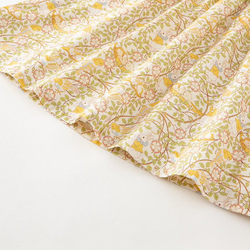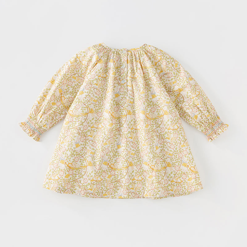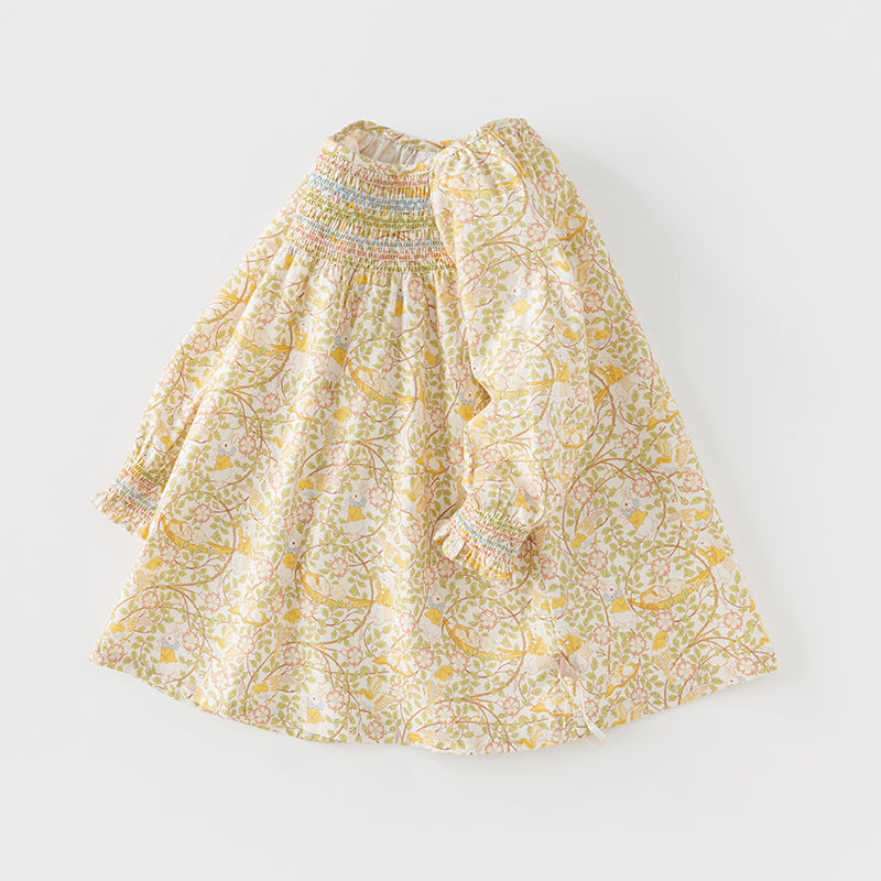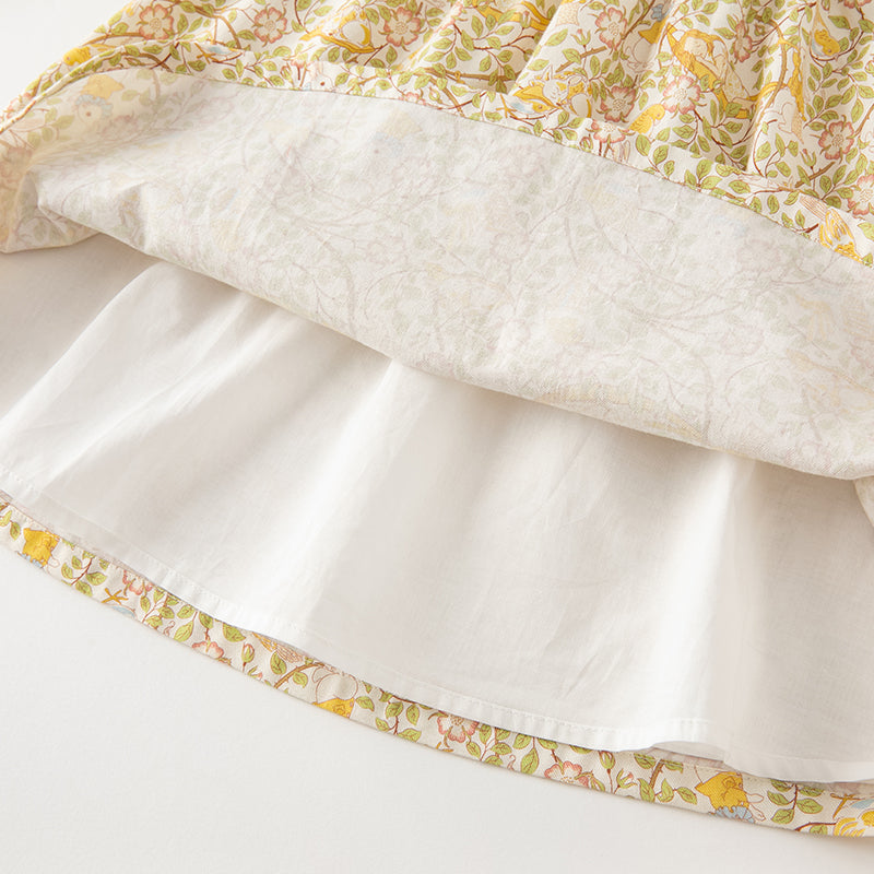 Dave&Bella Toddler Girls Beige Floral Print Cotton Princess Dress