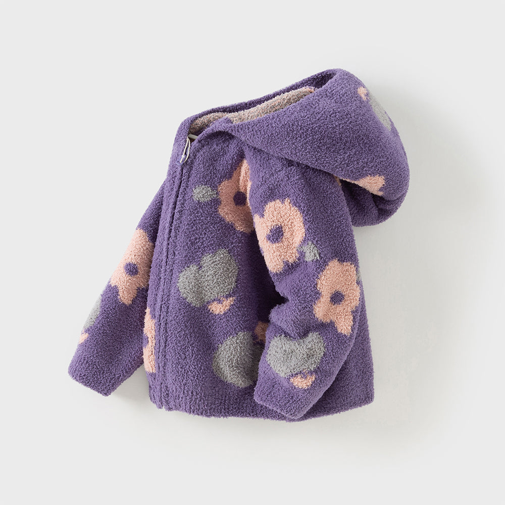 Dave&Bella Toddler Girls/Boys Winter Khaki/Purple Print Hooded Coats