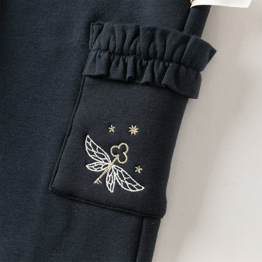 Dave&Bella Toddler Girls Casual Navy Blue Straight-leg Plush-lined Pants