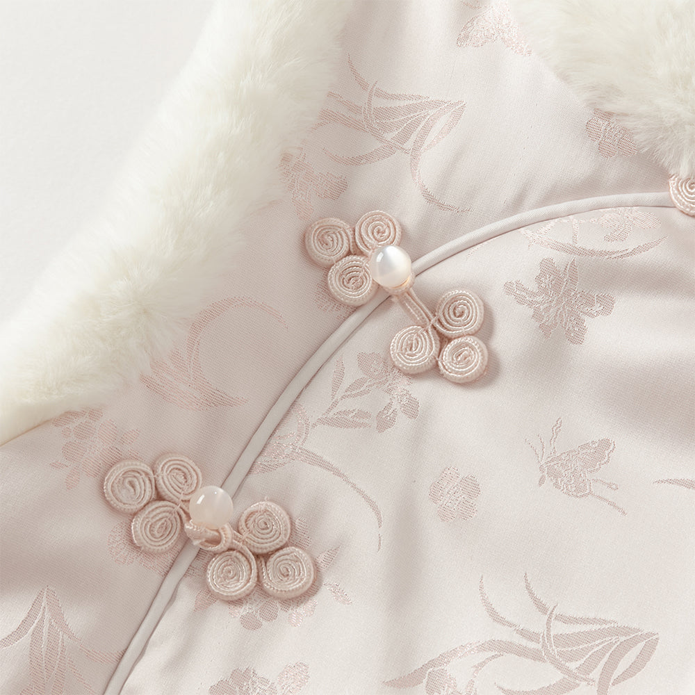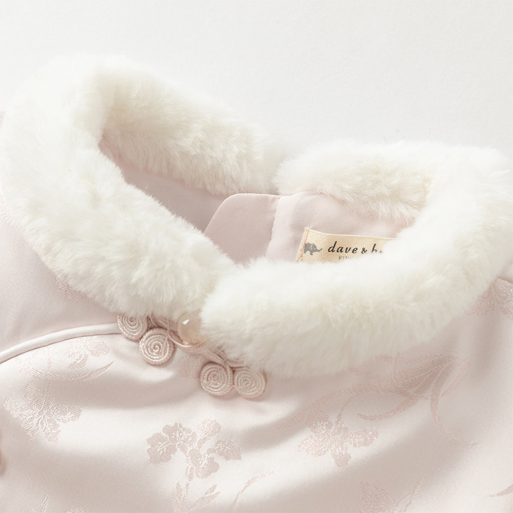 Dave&Bella Toddler Girls Chinese-style Light Pink Turtle Sleeveless Warm Padded Vests Tops