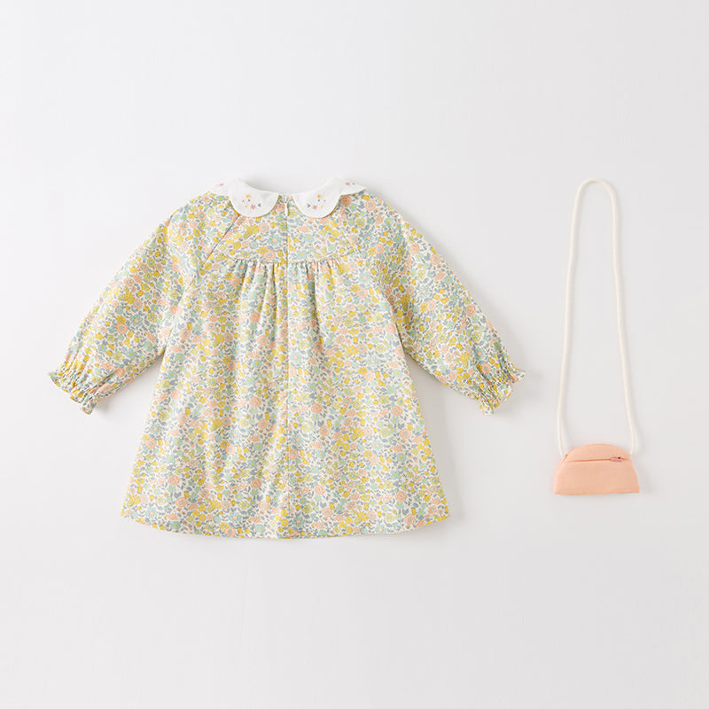 Dave&Bella Toddler Girls Cute Floral Lightweight Cotton A-line Dress(wallet bag)