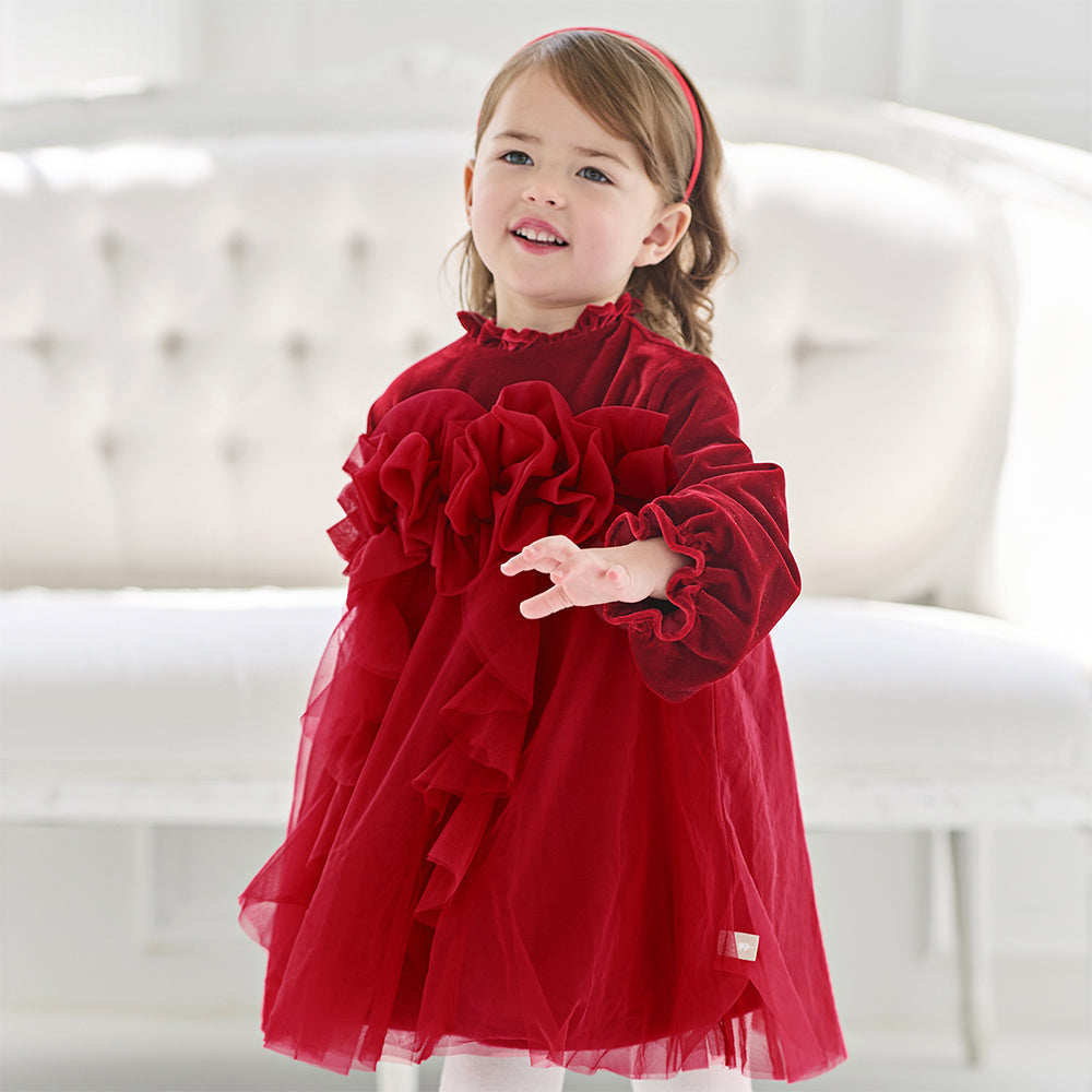 Dave&Bella Toddler Girls Cute Red Soft Turtle Cozy A-line Mesh Princess Dress