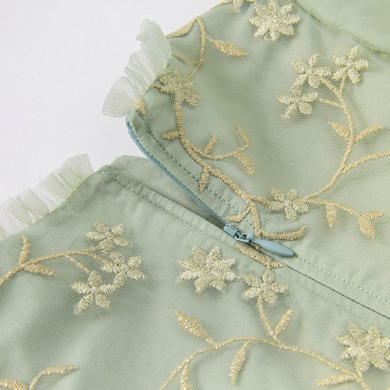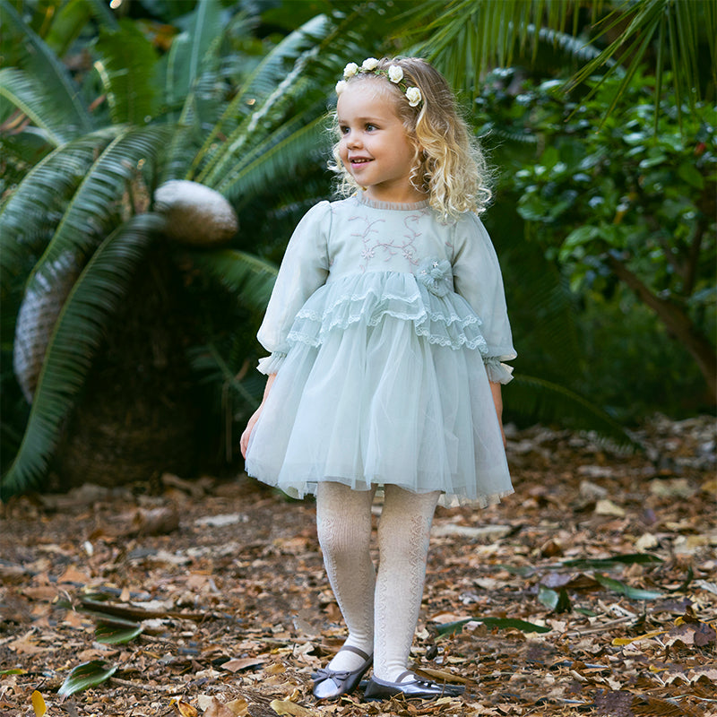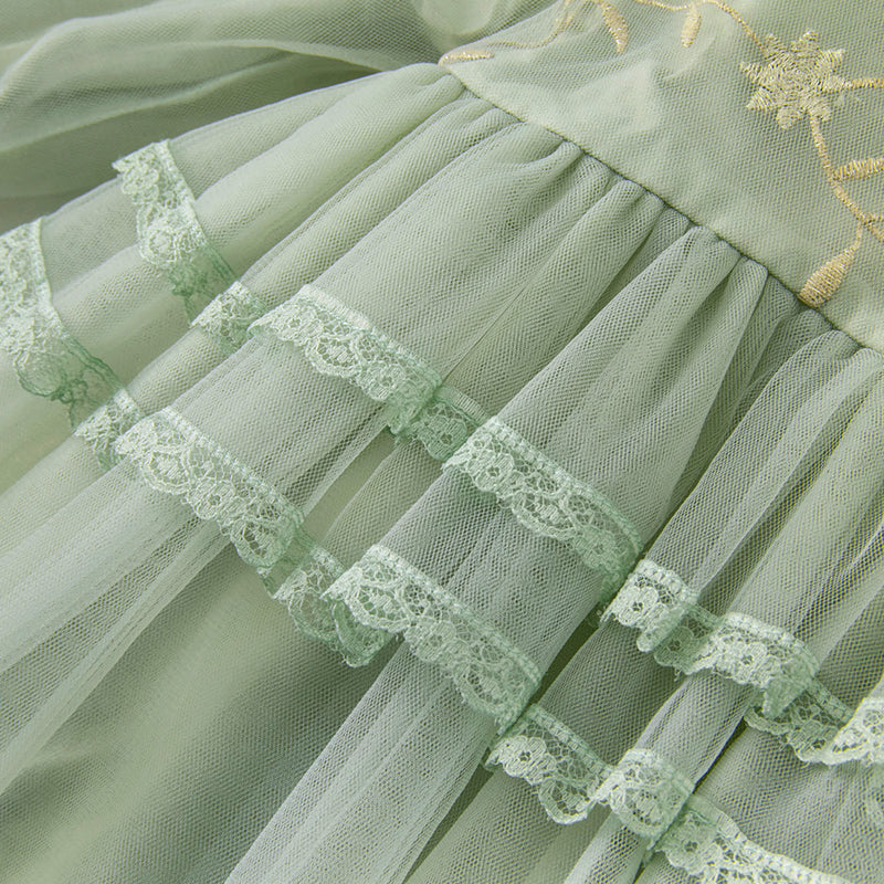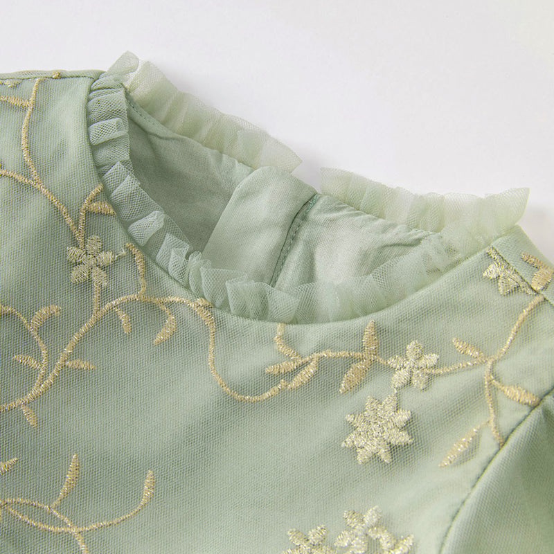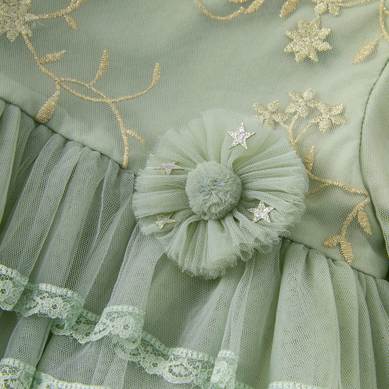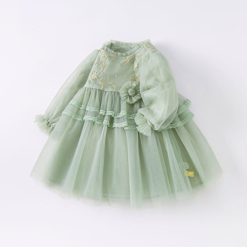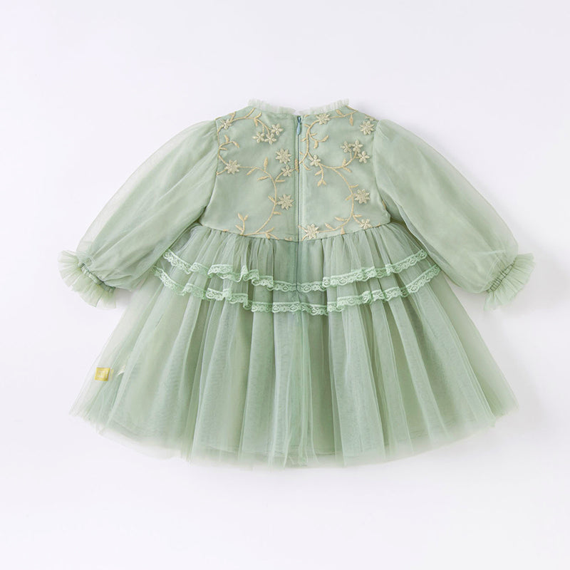 Dave&Bella Toddler Girls Grey Green Mesh A-line Princess Dress