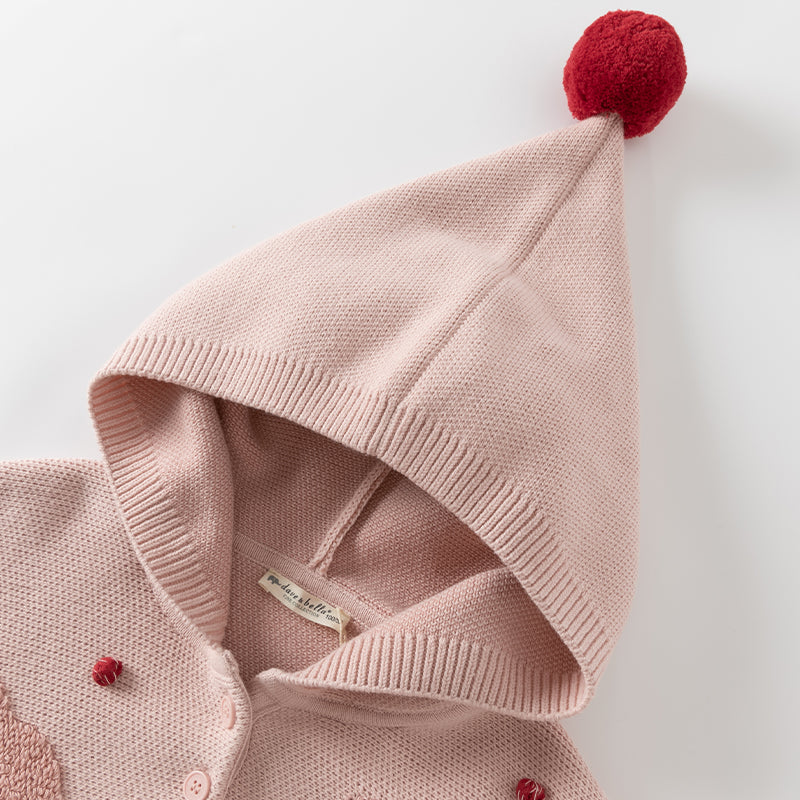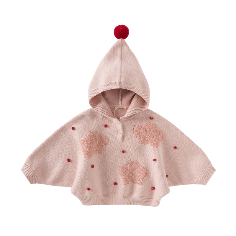 Dave&Bella Toddler Girls Grey Pink  Knit hooded Cape-style Sweater Tops