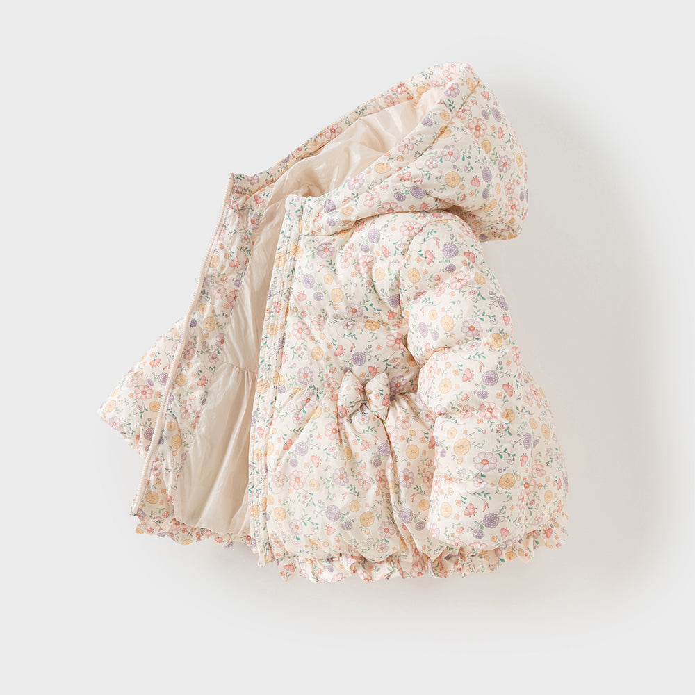 Dave&Bella Toddler Girls Print Pink Long-sleeved Outwear Warm Down Coats