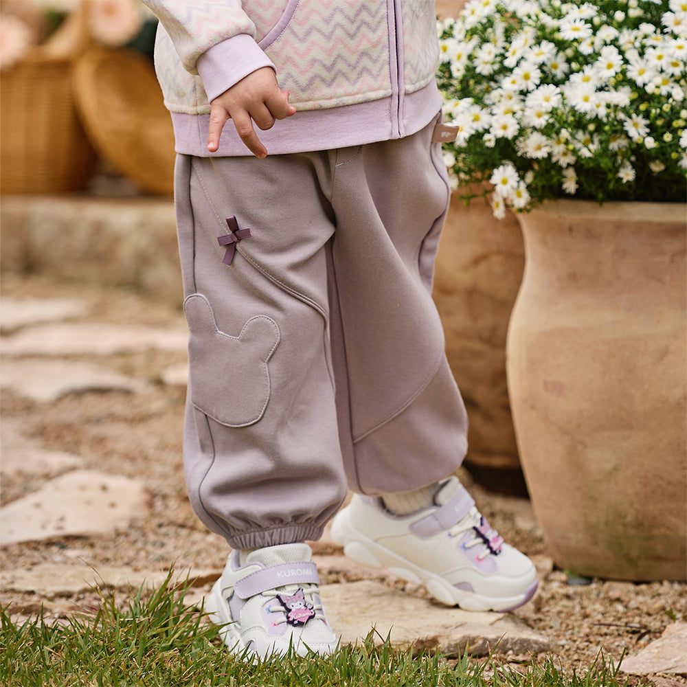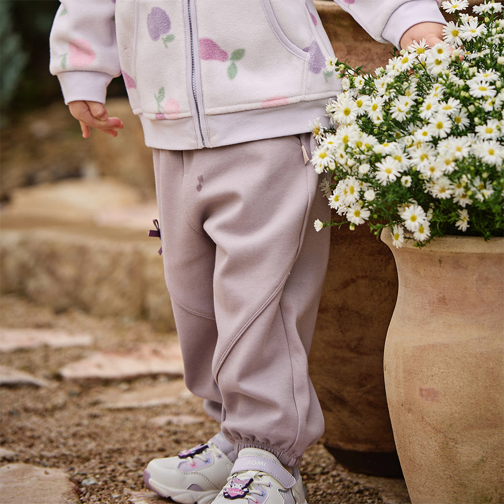 Dave&Bella Toddler Girls Purple Adjustable-waistband Outdoor Loose Pants