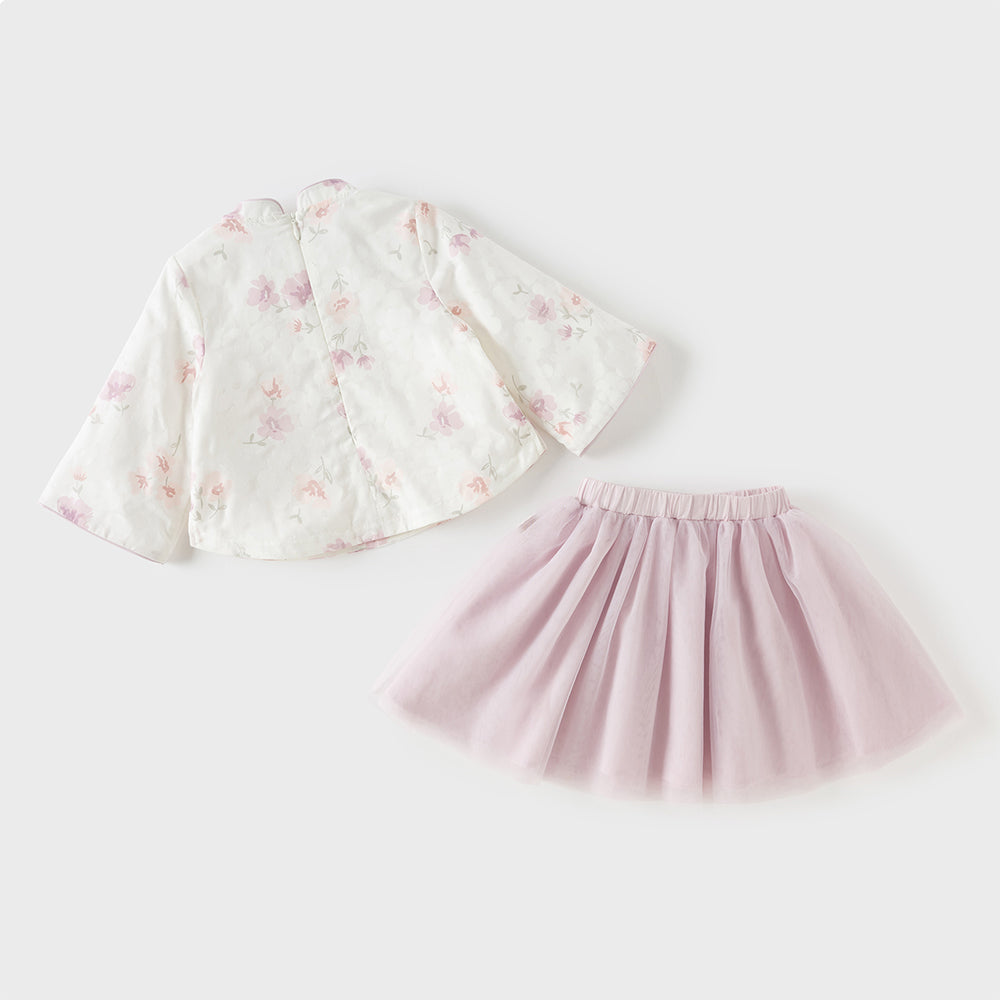Dave&Bella Toddler Girls Purple Pink Floral Print Chinese-style Turtle Top Mesh Skirt Suits