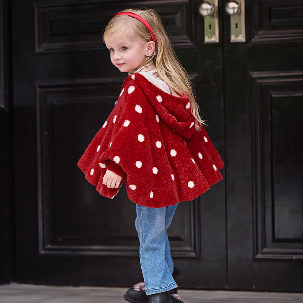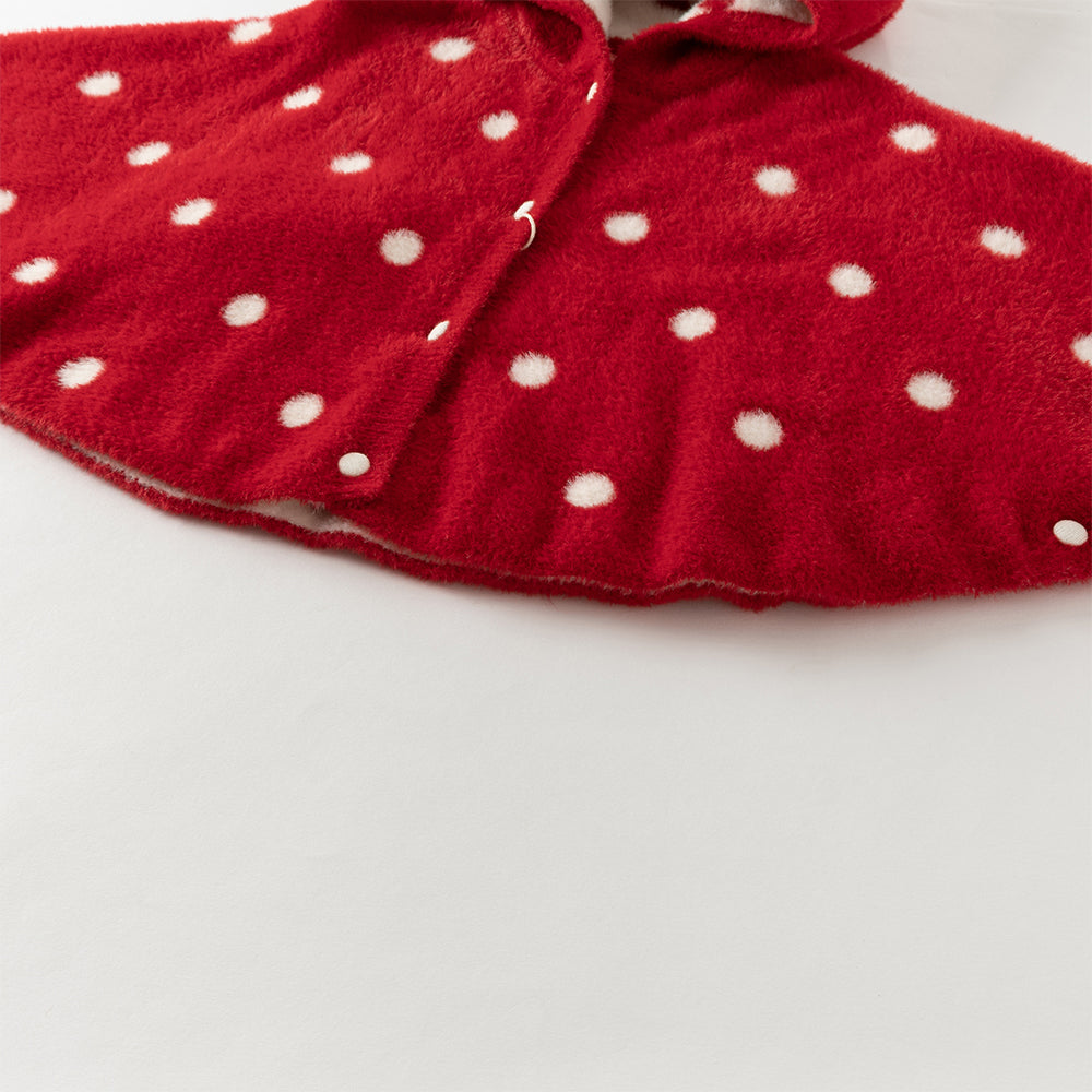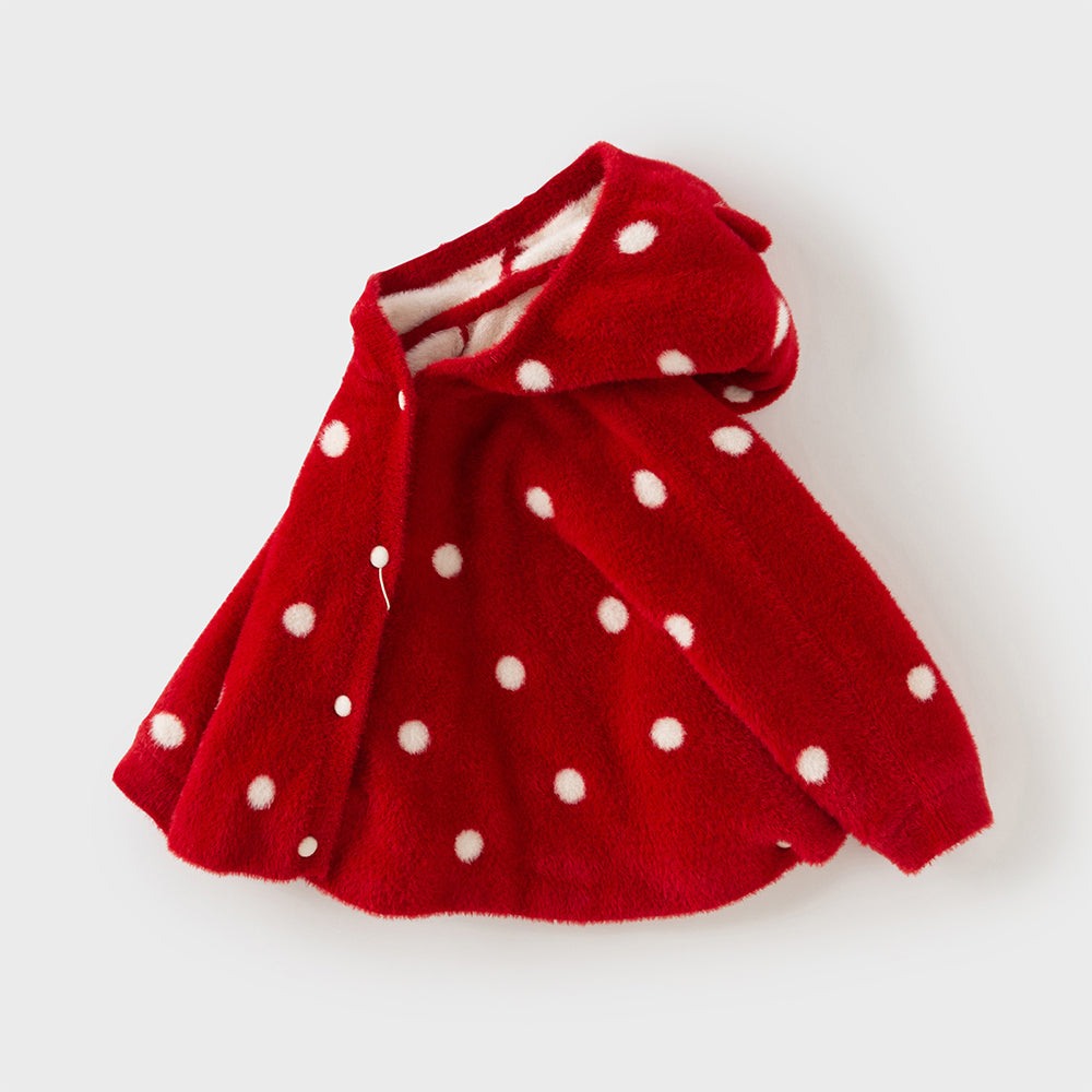 Dave&Bella Toddler Girls Red Dots-print Hooded Long-sleeved Soft Plush Capes