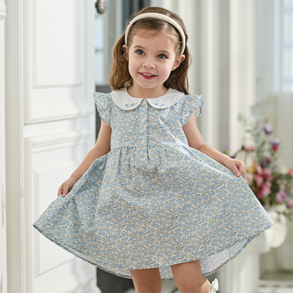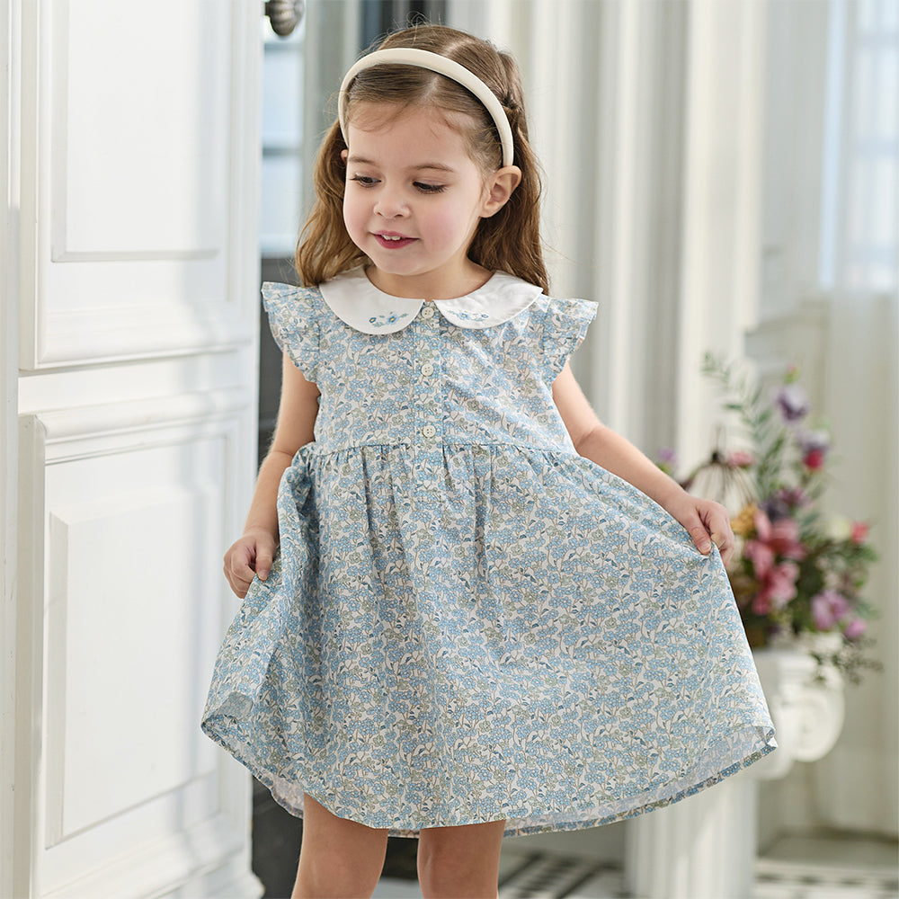 Dave&Bella Toddler Girls Summer Grey Blue Floral Flutter Sleeve Cotton Soft Daily Dress