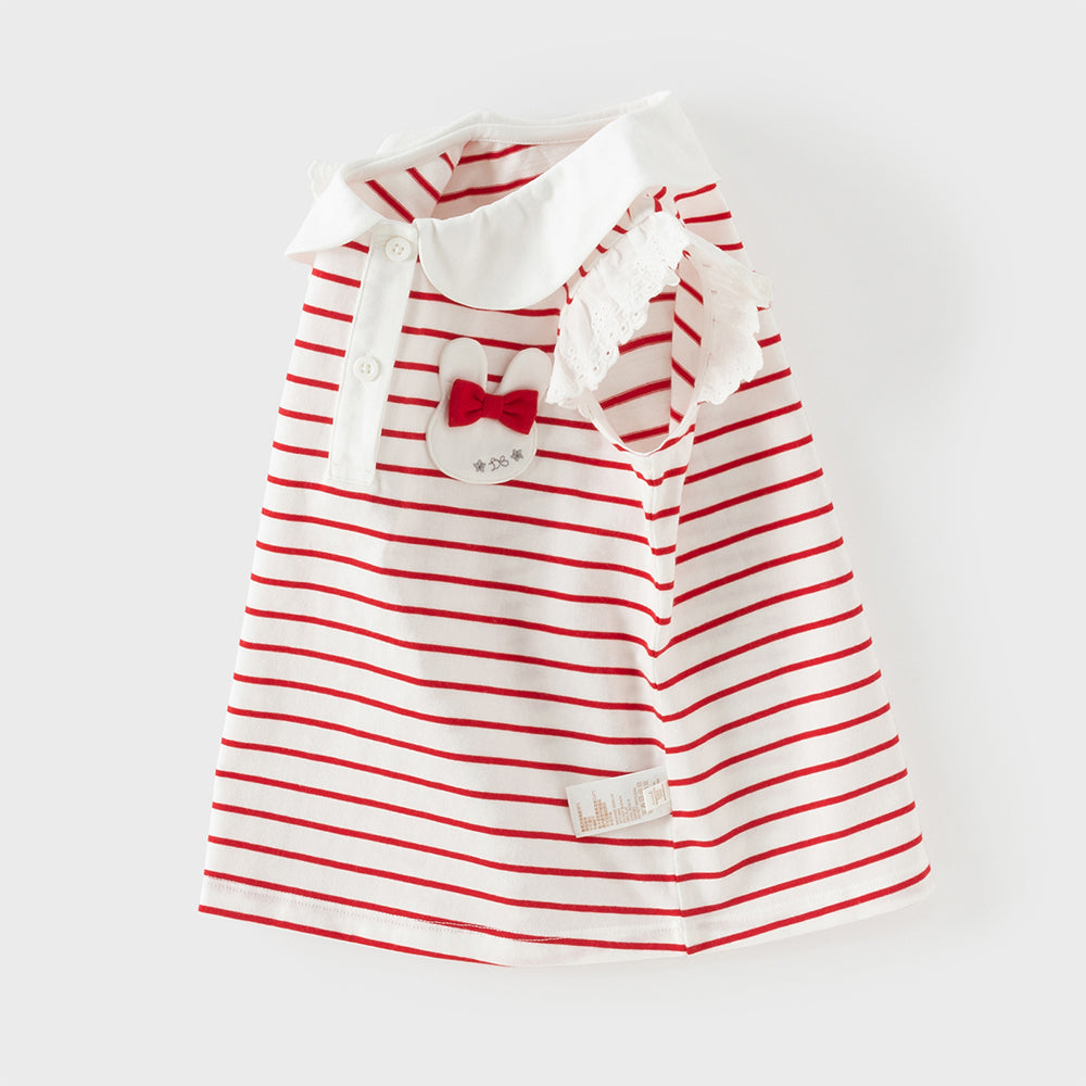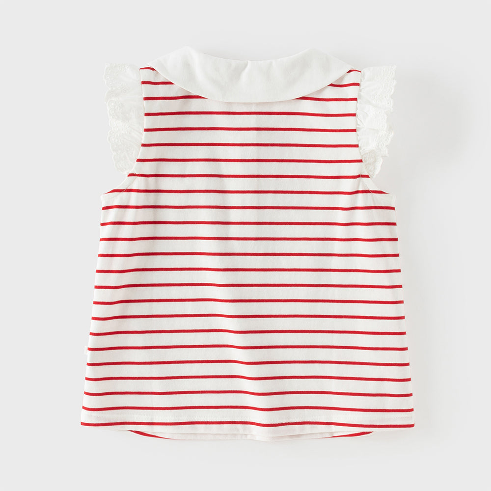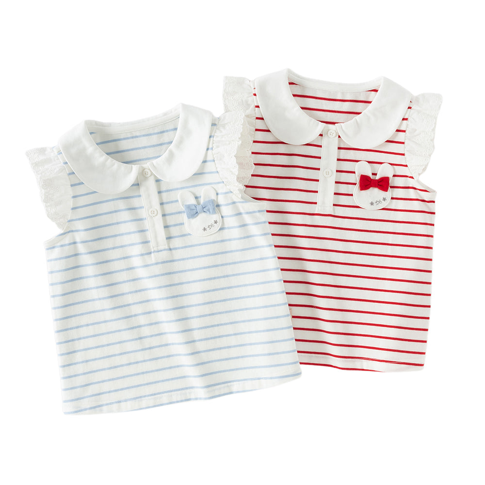 Dave&Bella Toddler Girls Summer Red/Blue Fashion Striped Breathable Cotton Polos