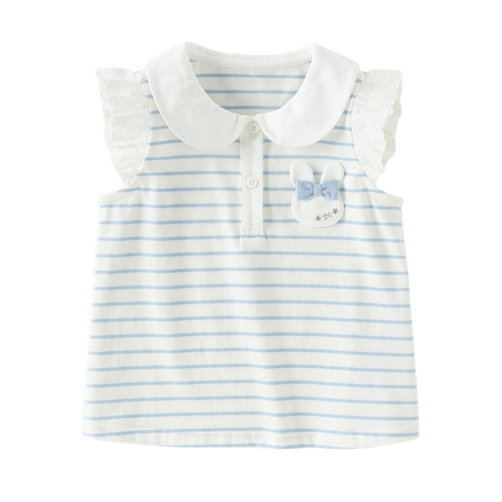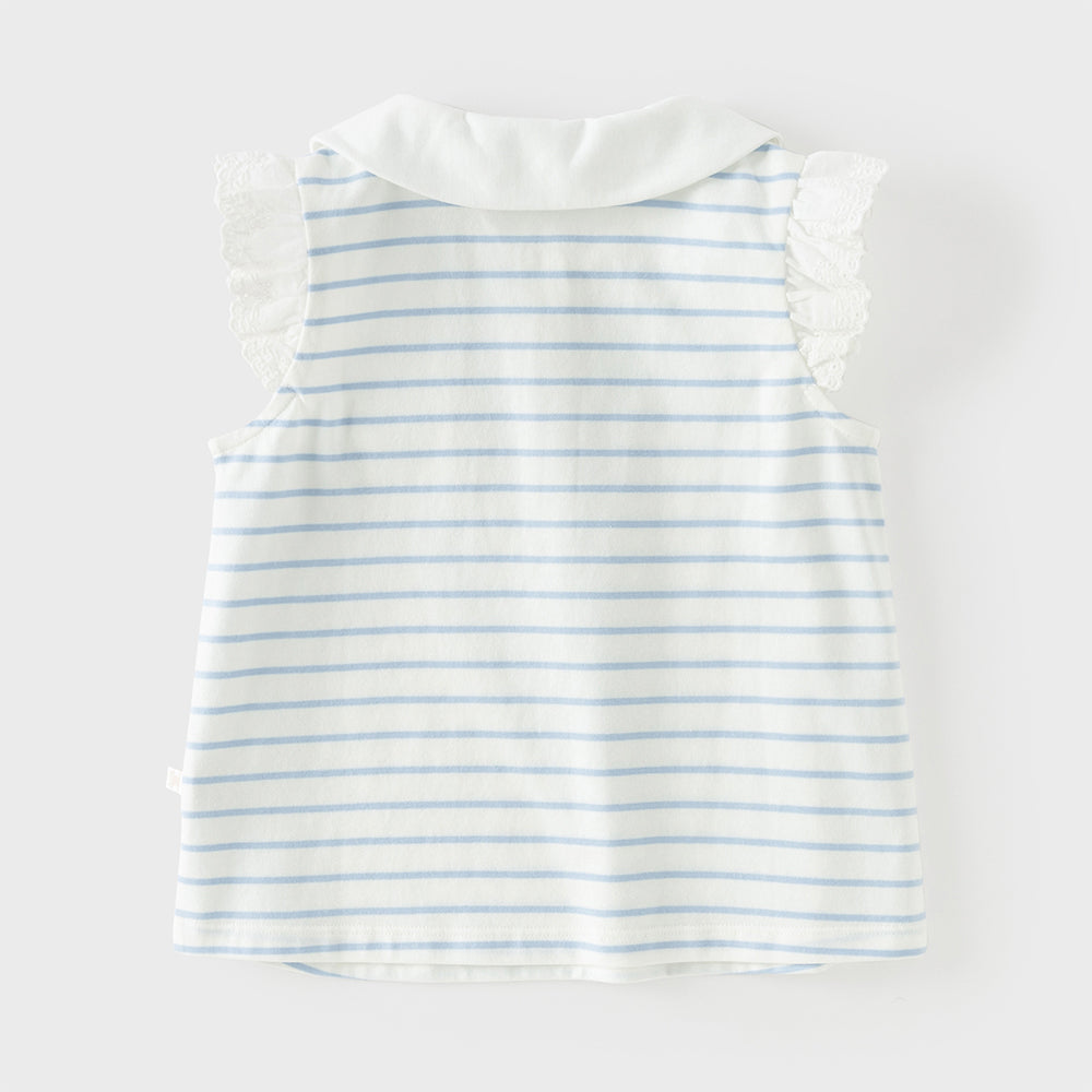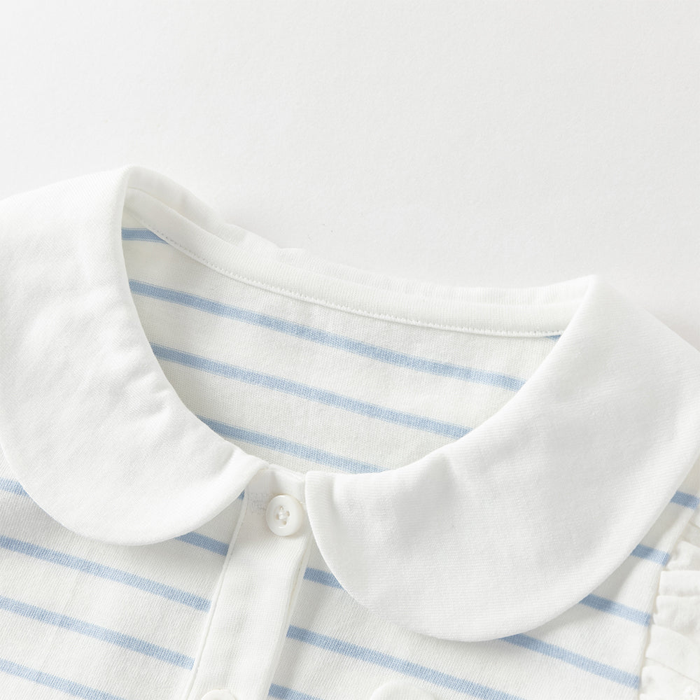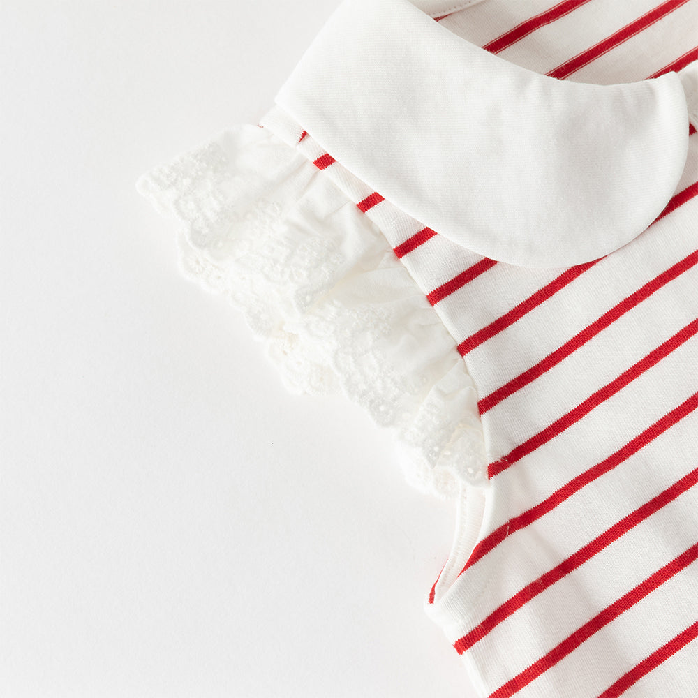 Dave&Bella Toddler Girls Summer Red/Blue Fashion Striped Breathable Cotton Polos