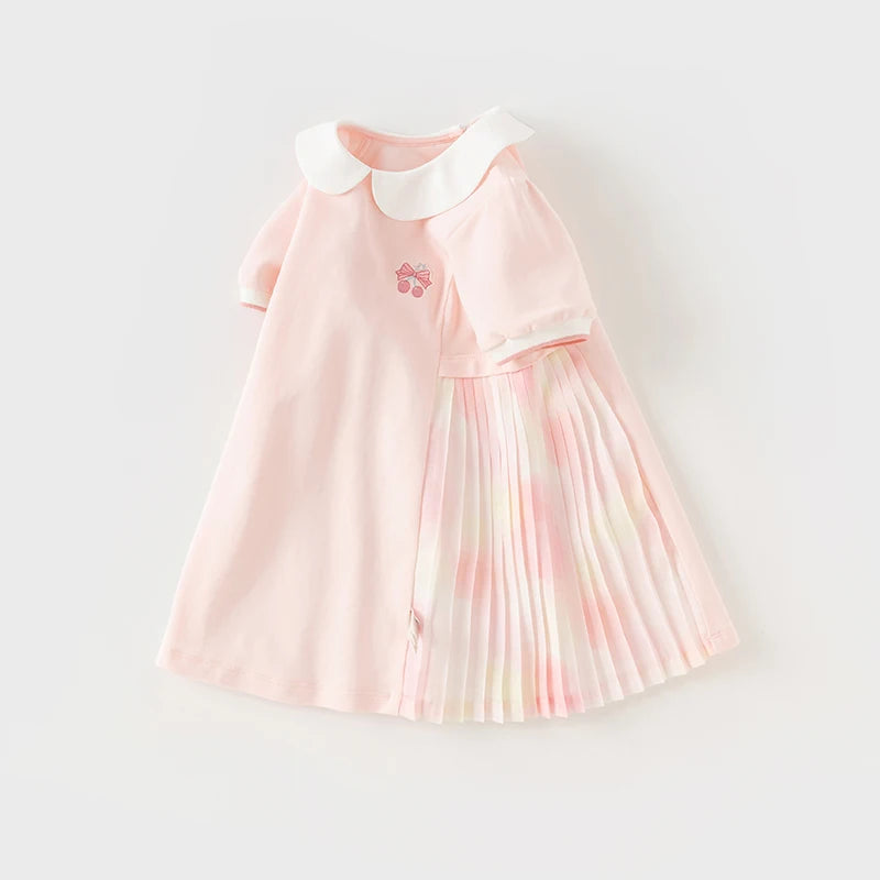 Dave&Bella Toddler Girls Summer Short Sleeve Pink Pleated Dress