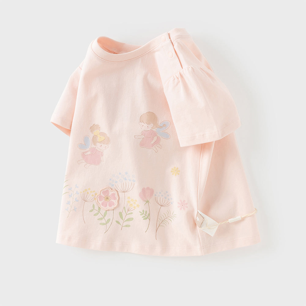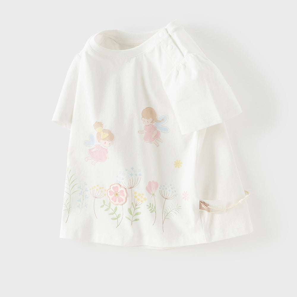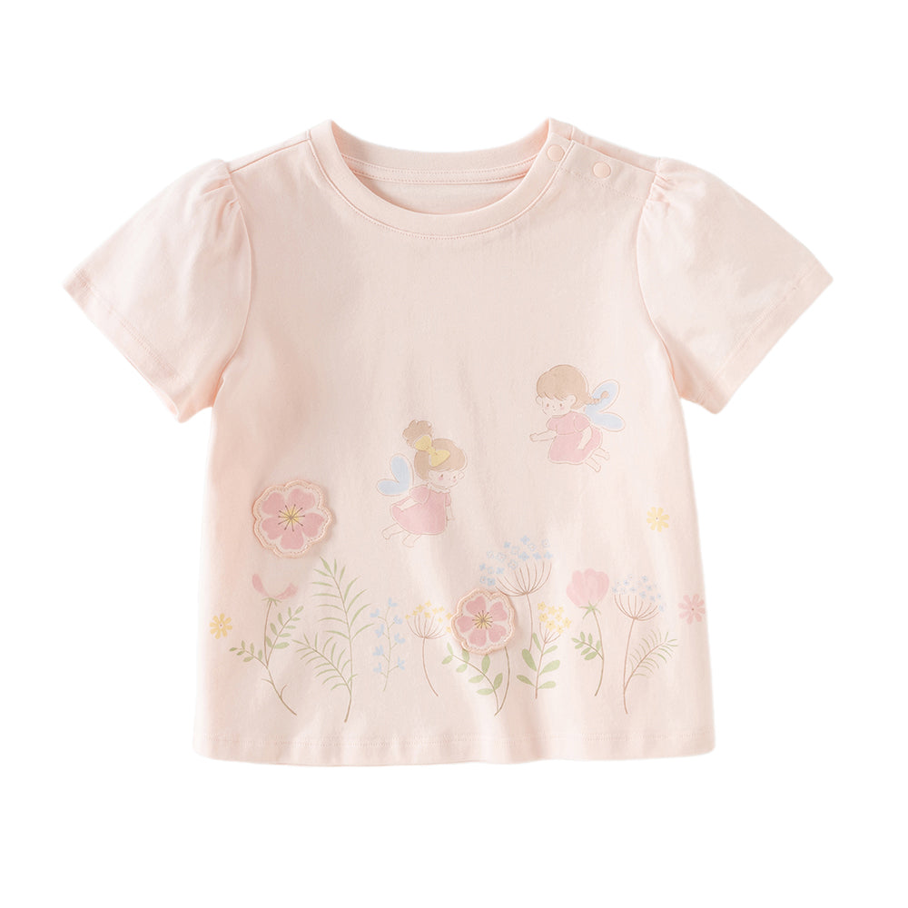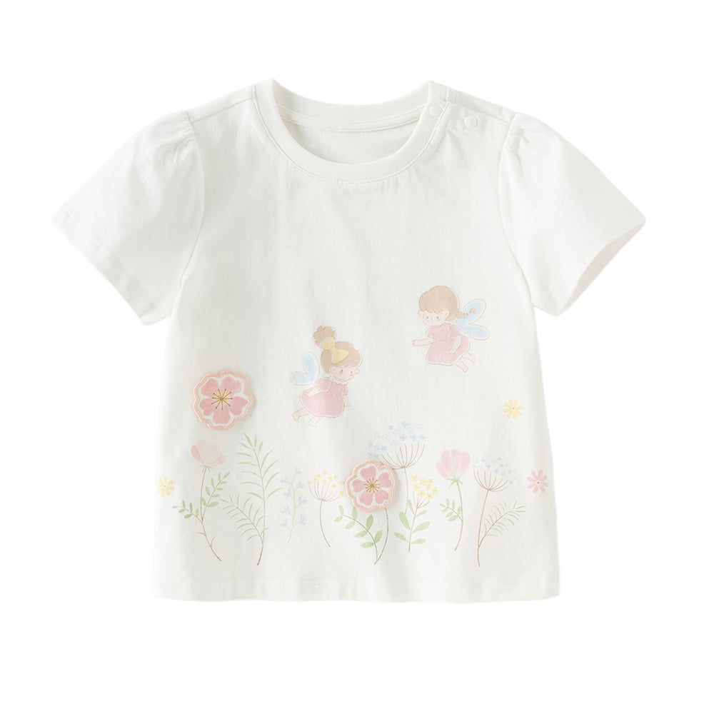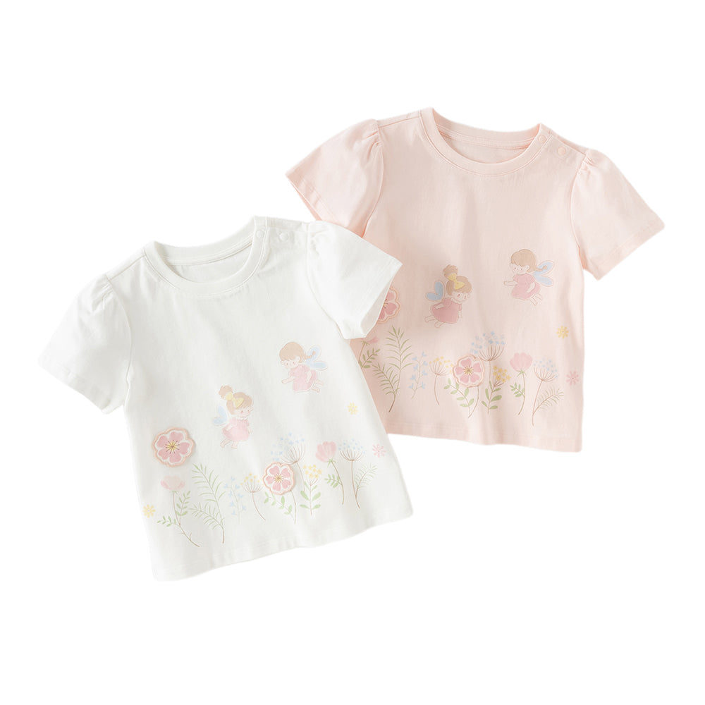 Dave&Bella Toddler Girls Summer White/Pink Flower Print Cotton Cute T-shirts