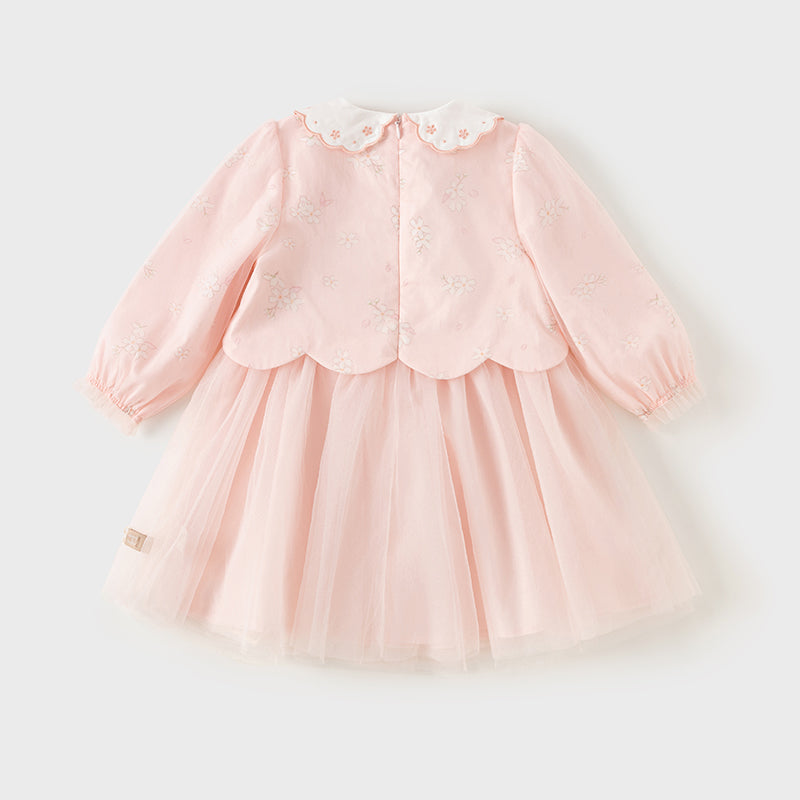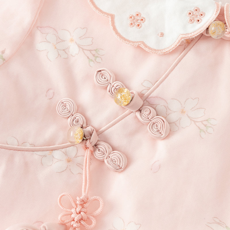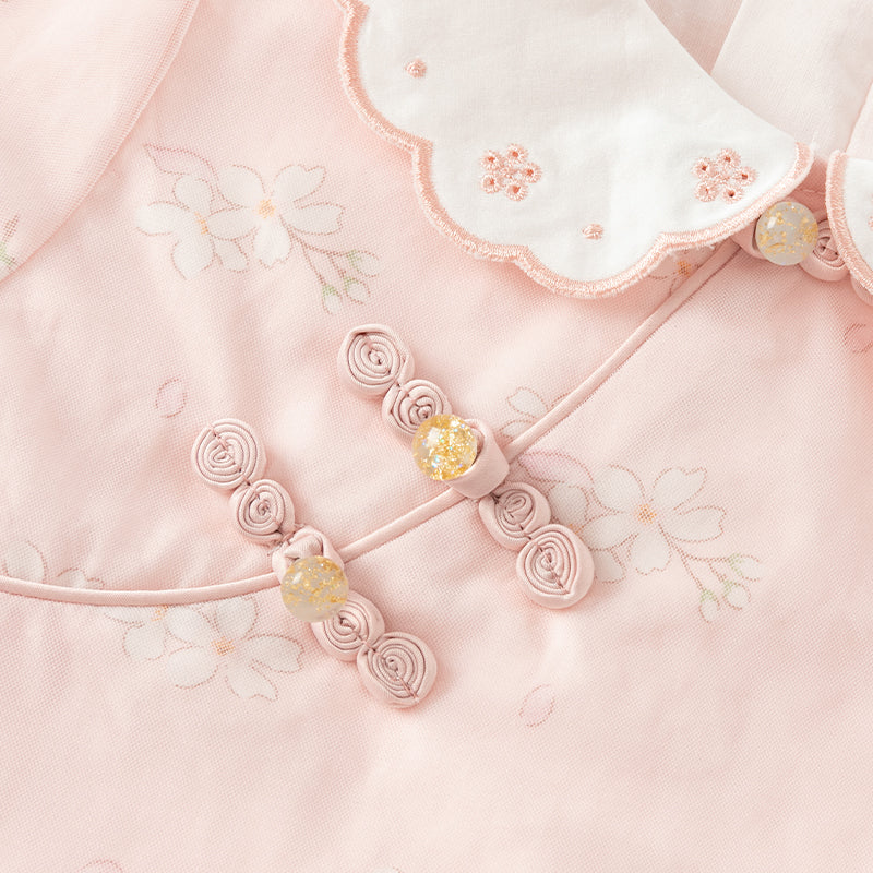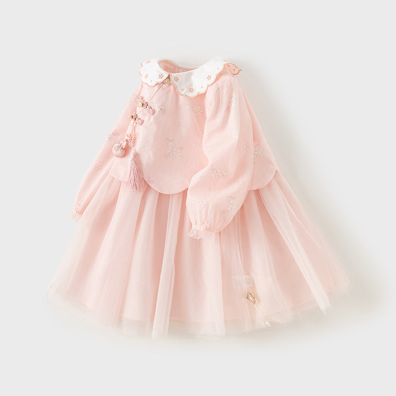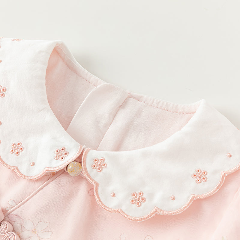 Dave&Bella Toddler Girls Sweet Pink Floral Lace Collor Chinese-style Mesh Dress