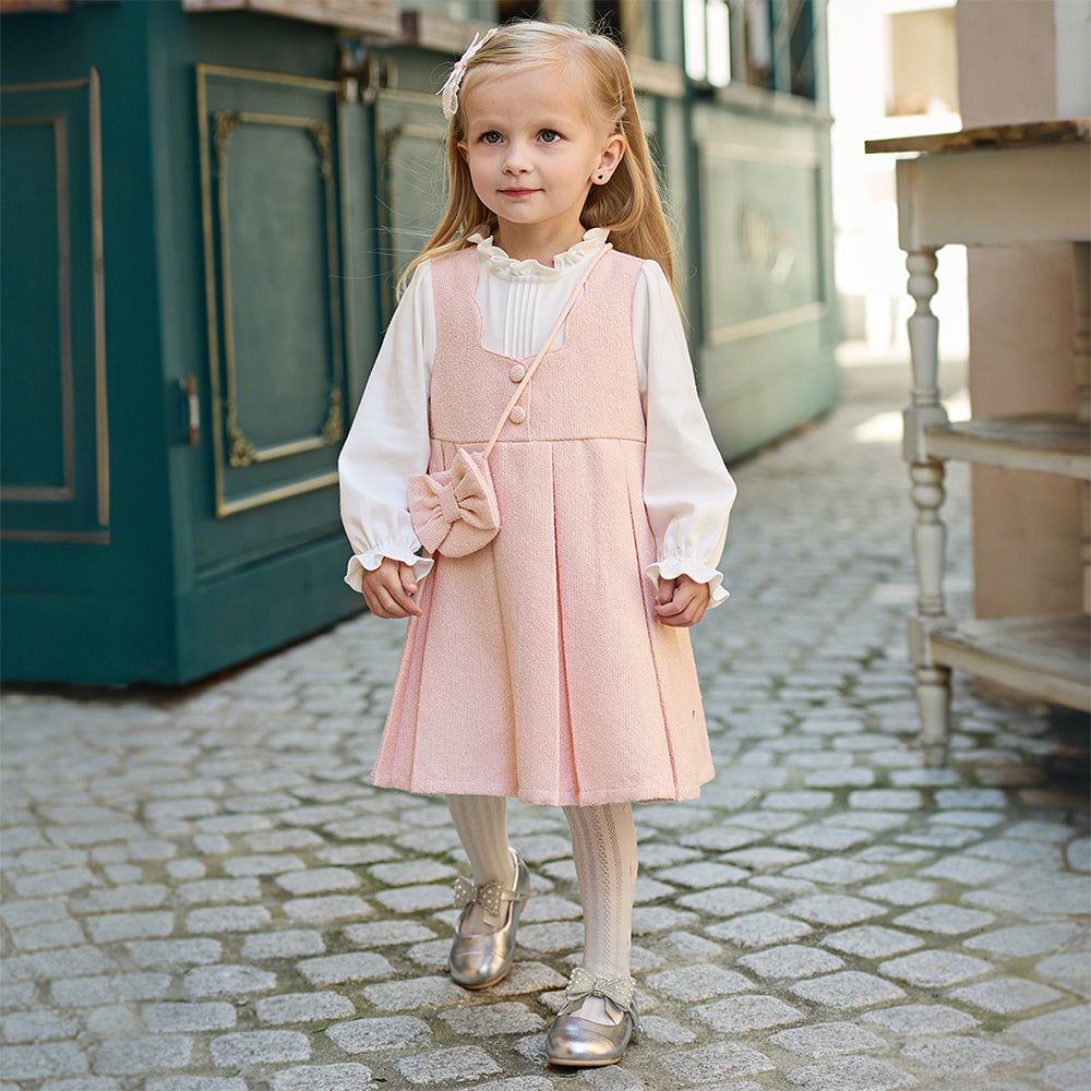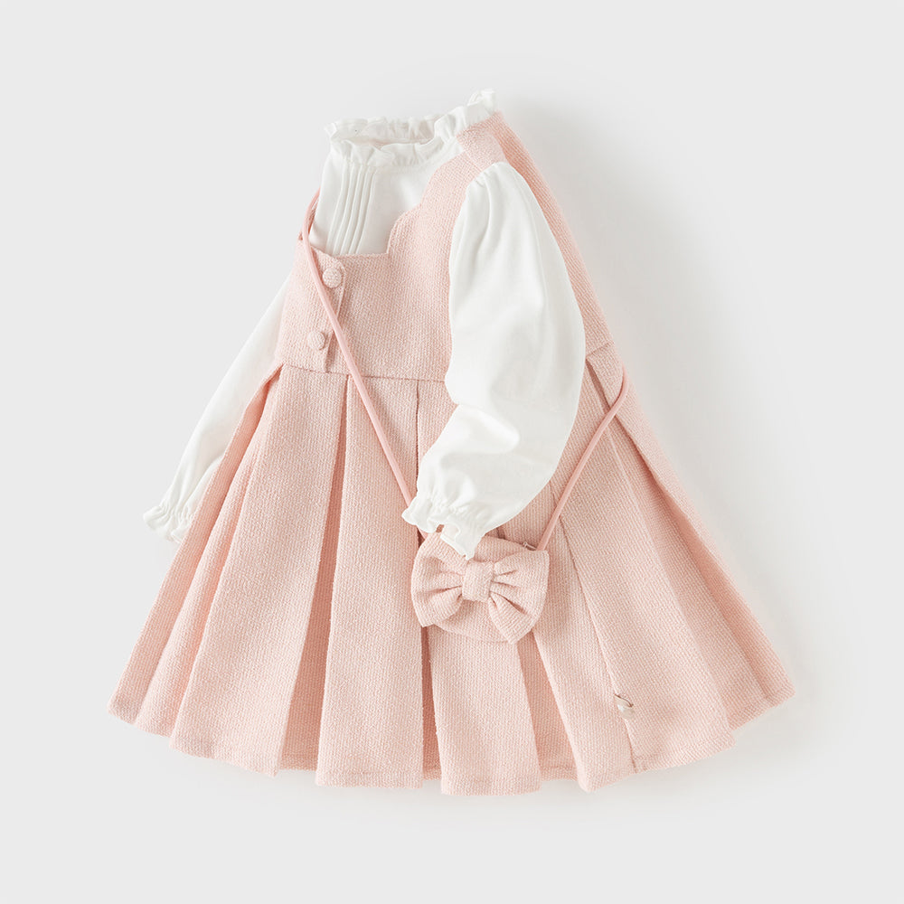 Dave&Bella Toddler Girls Sweet Pink Turtle Fake-two-piece A-line Dress(wallet bag)