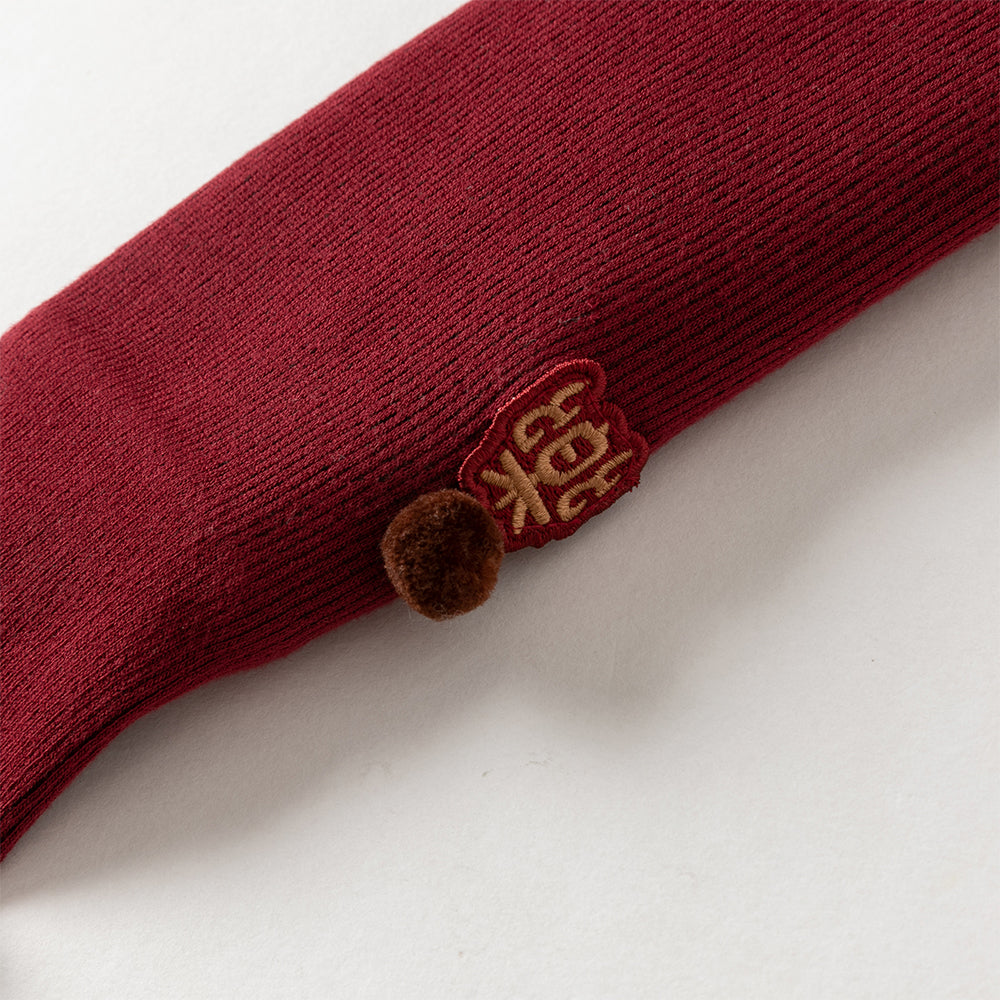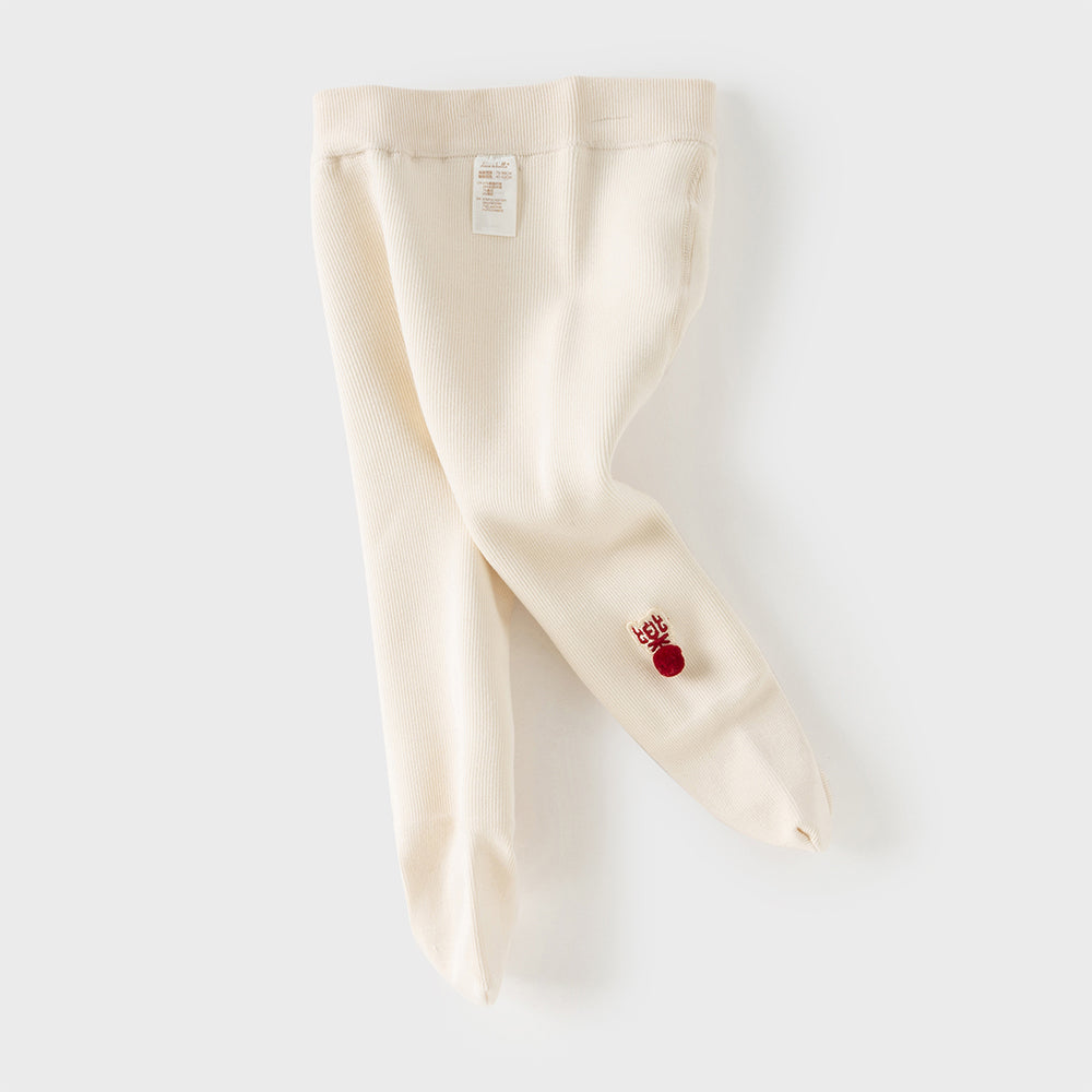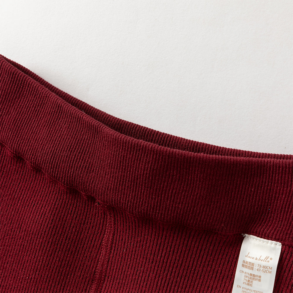 Dave&Bella Toddler Girls Versatile Red/Beige Plush-lined Tights Leggings