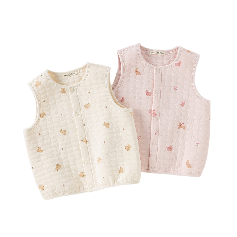 Dave&Bella Toddler Girls Winter Charming Beige/Light Pink Sleeveless Padded Vests Tops