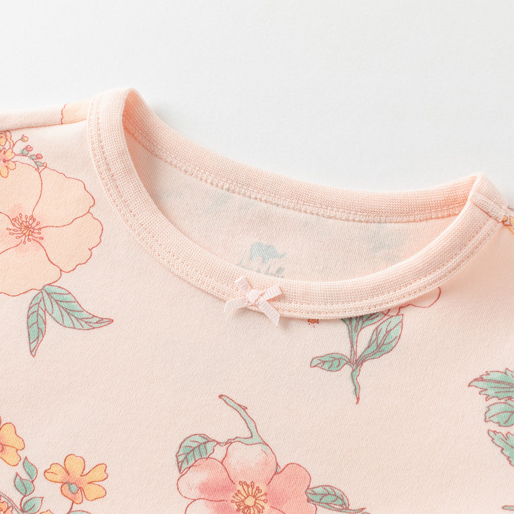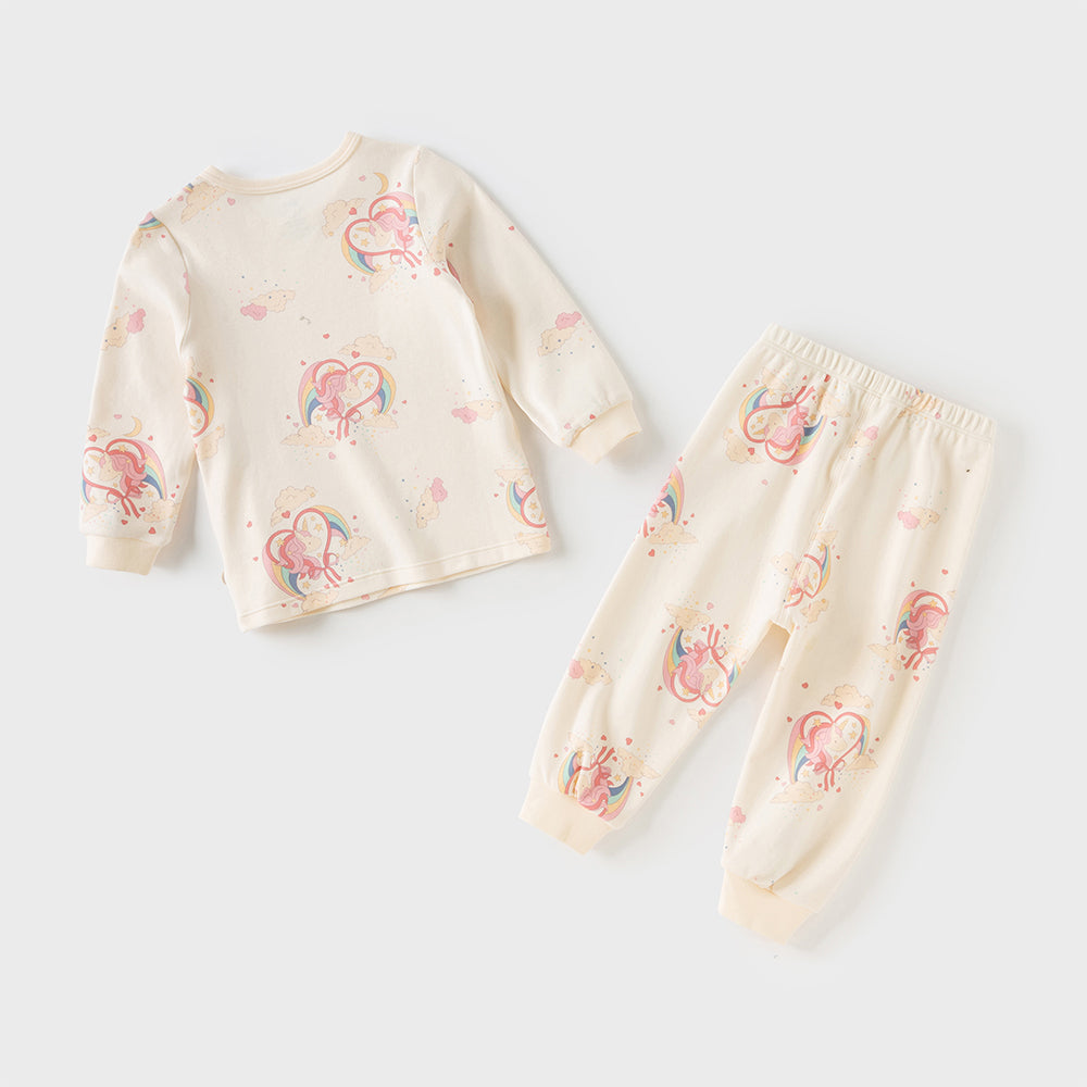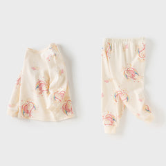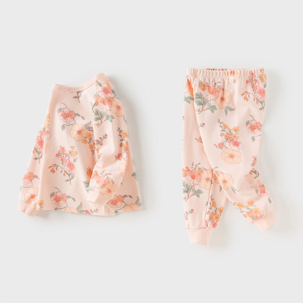 Dave&Bella Toddler Girls Winter Cute Beige/Pink Print Breathable Cotton Pajamas