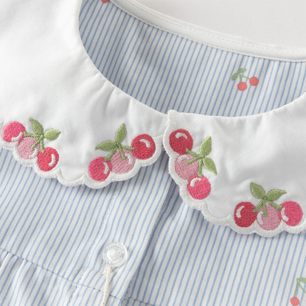 Dave&Bella Toddler Girls Summer Fashion Striped Cherry Embroidery Lightweight Shirts