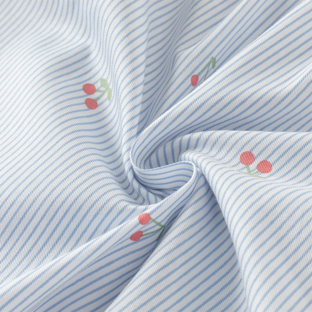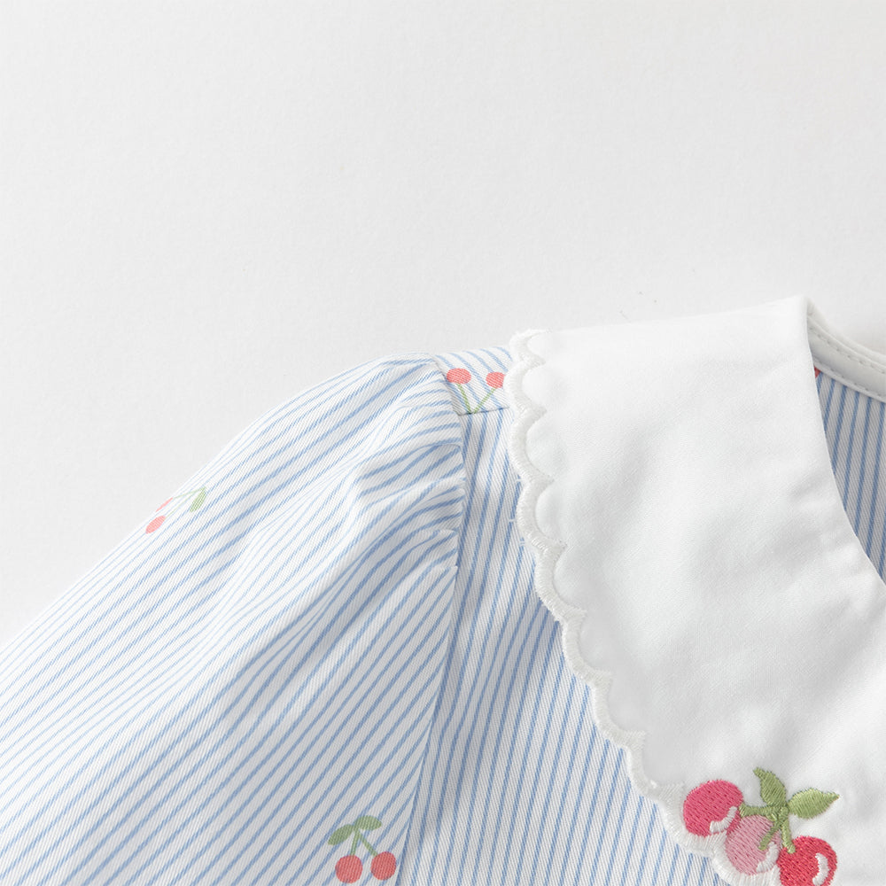 - Design: Striped, Cherry Embroidery, Shirts